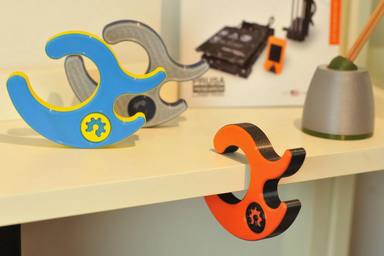 Những hình ảnh này hiển thị mẫu desk_hook.3mf đã được in.