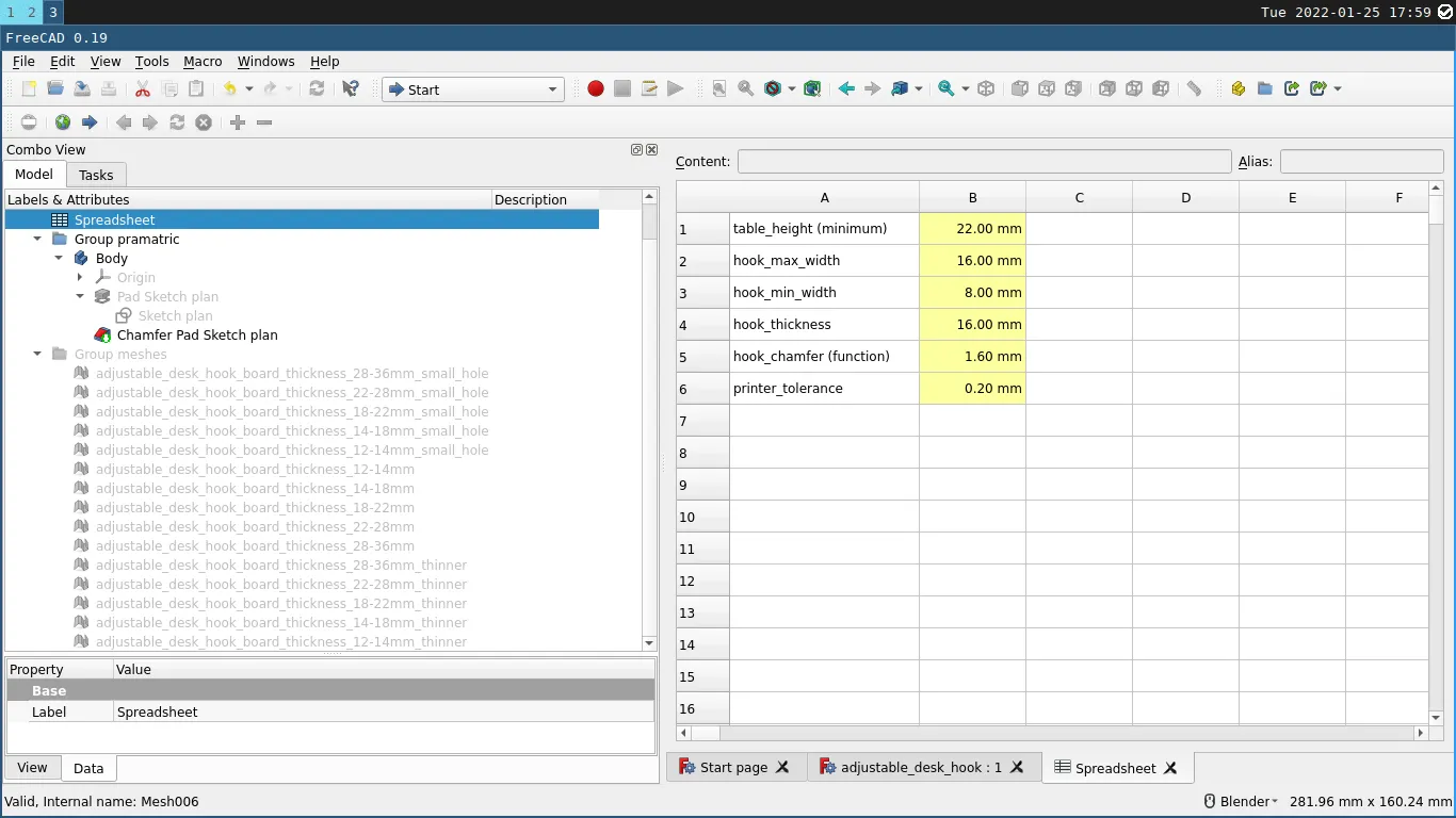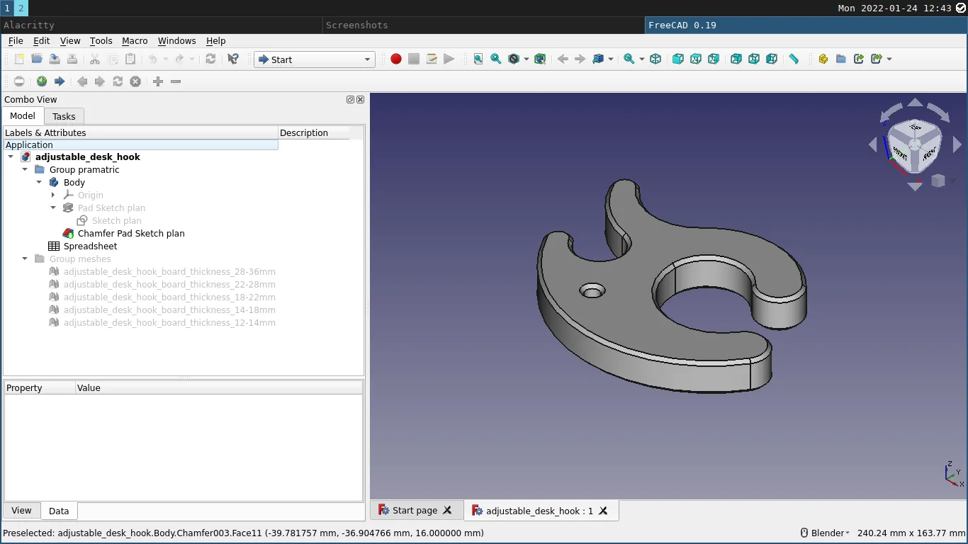 Mẫu móc treo bàn kép kiêm túi này có thể tùy chỉnh và mang đi tiện lợi. Phiên bản này được bo tròn hơn, có thêm móc treo và file nguồn FreeCAD đi kèm để bạn dễ dàng điều chỉnh.