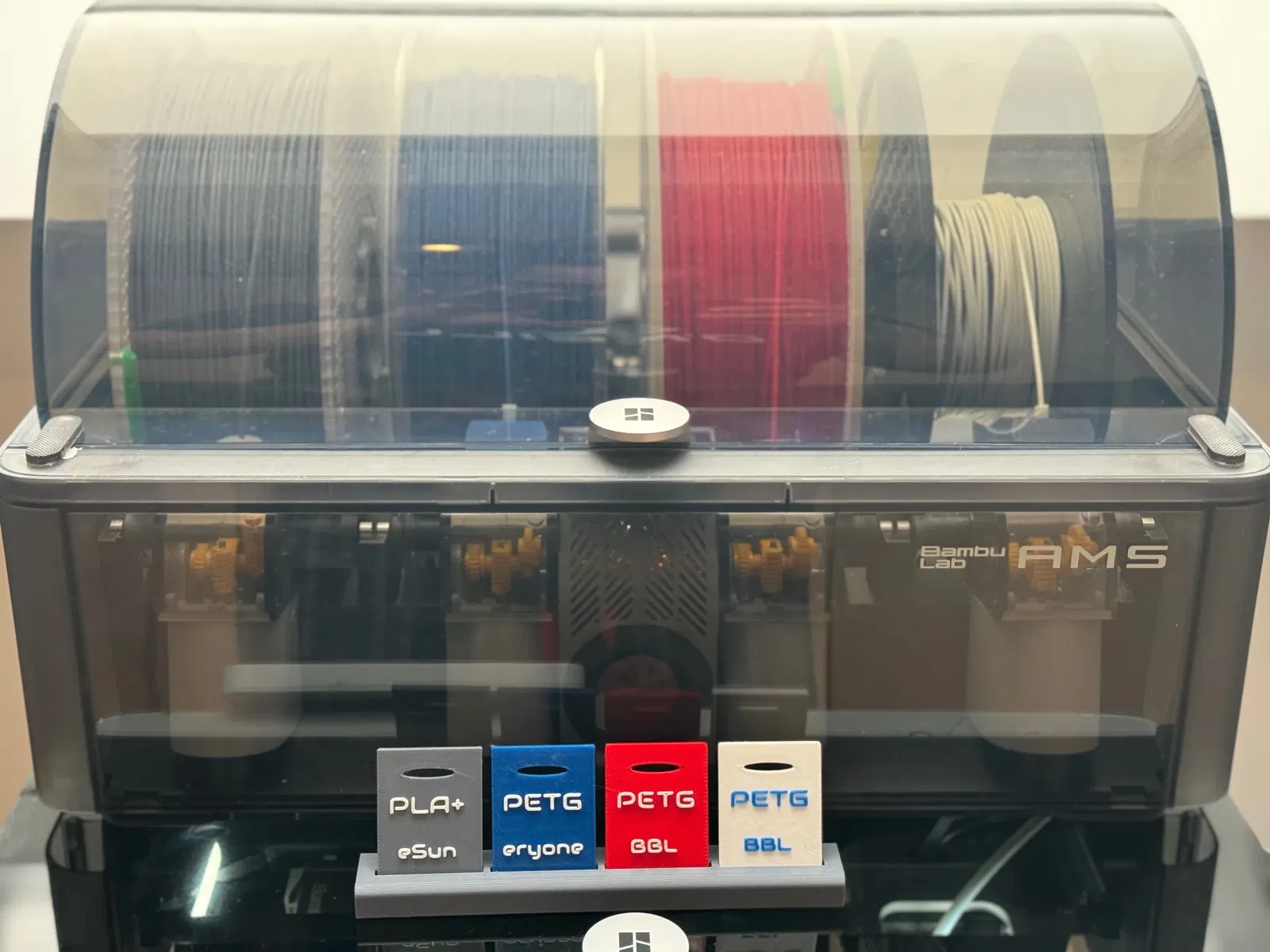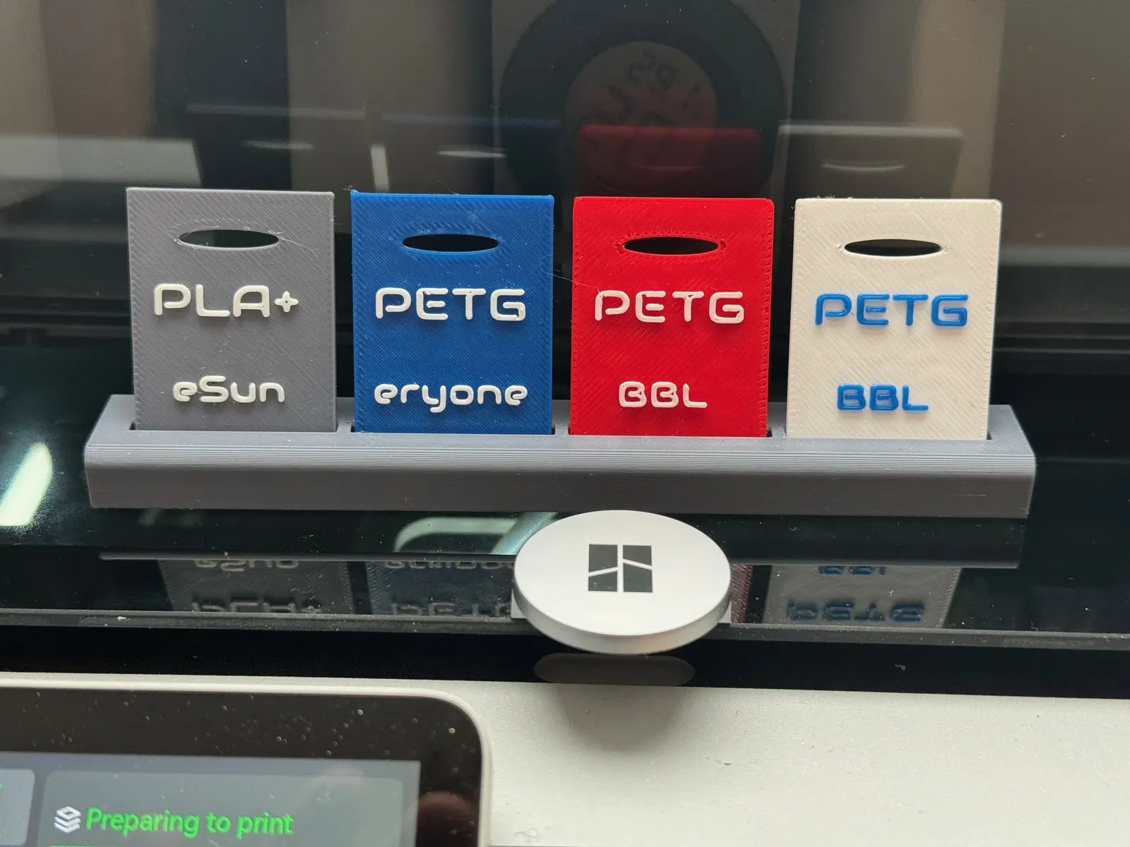 Tao cần một cái nhìn tổng quan về loại filament nào đang được nạp vào cái AMS của tao. Vì vậy, tao đã thiết kế một vài mẫu thử filament cùng với một cái đế nhỏ để trưng bày chúng.