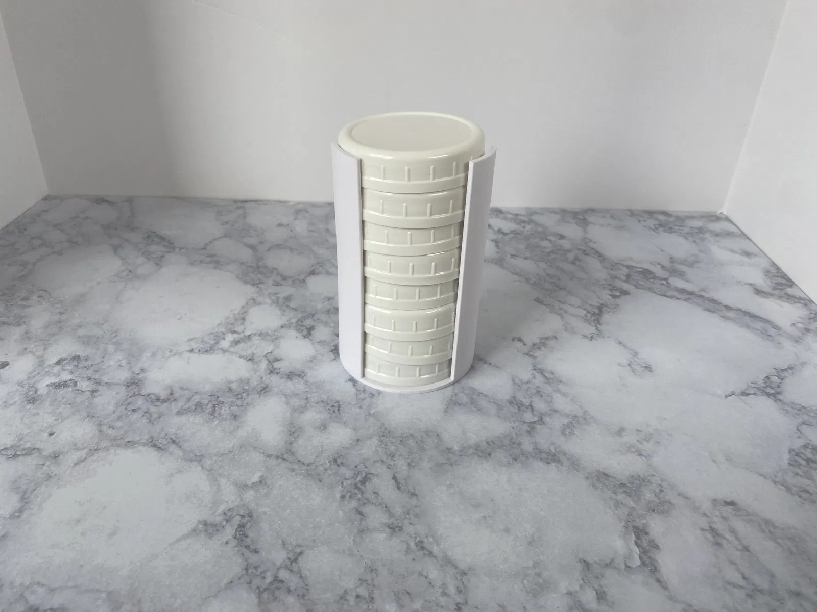 Dùng kệ này để cất giữ nắp nhựa hoặc kim loại, và/hoặc vòng đệm của lọ Mason. Thiết kế có thể đựng khoảng 8 nắp mỗi kệ, phù hợp cho cả nắp nhựa và nắp kim loại.