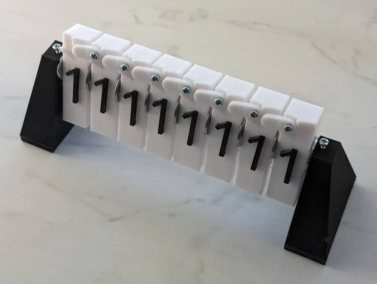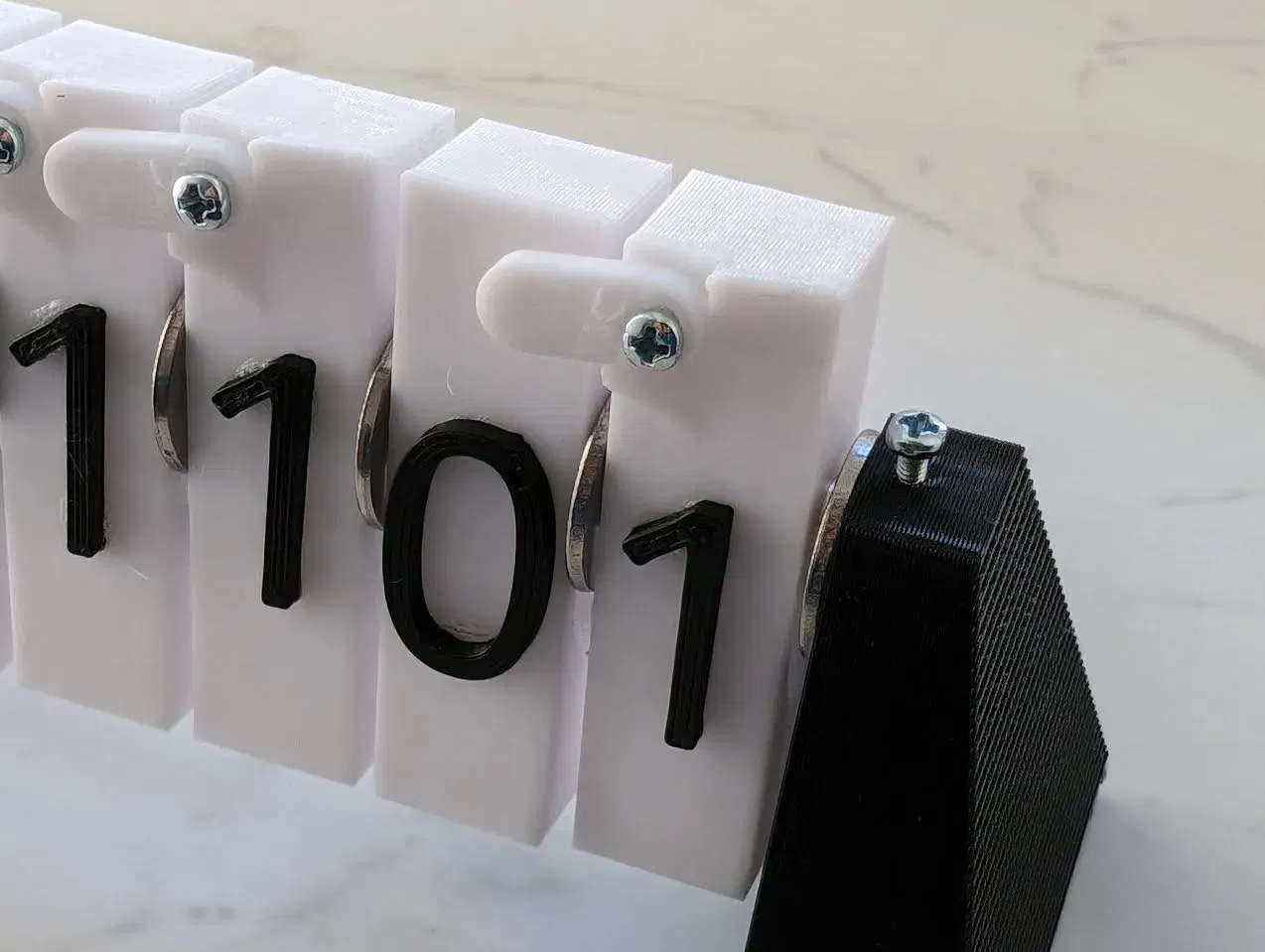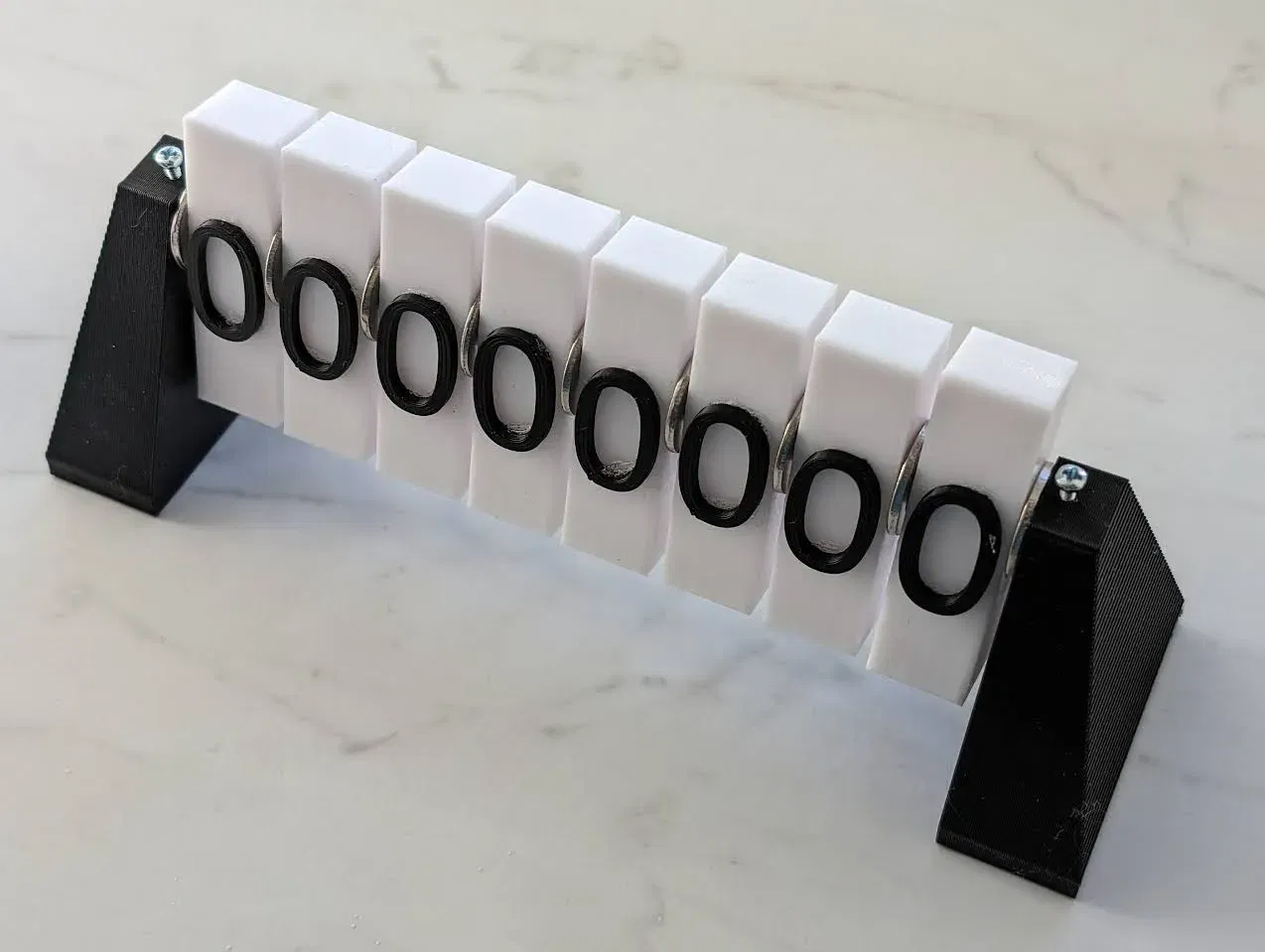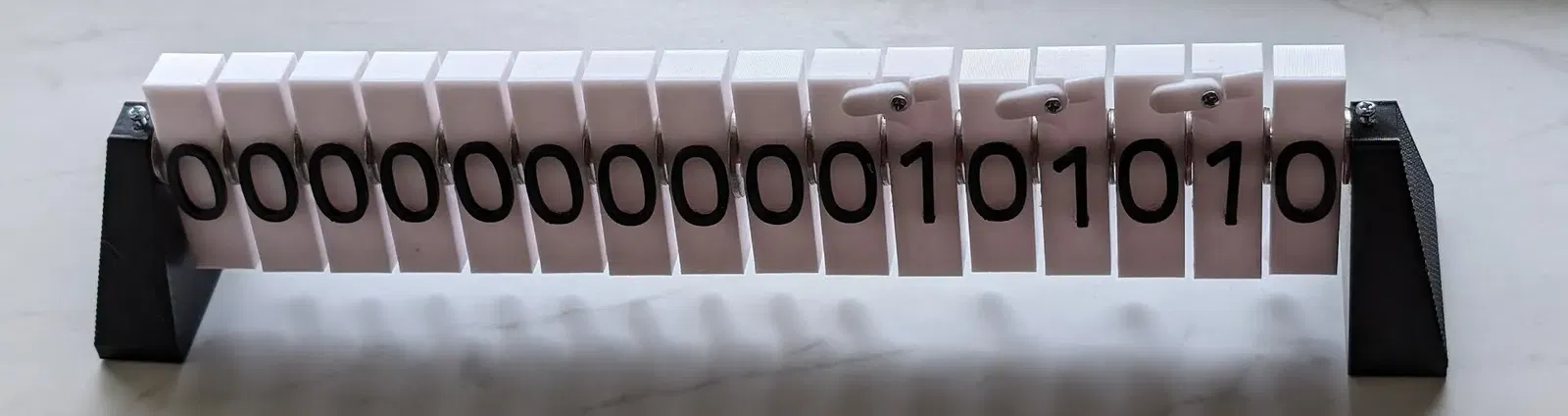 Một phiên bản khác của bộ đếm nhị phân cơ học, phục vụ mục đích giáo dục hoặc để anh em nghịch chơi. Phiên bản 8 bit này cần 2 màu filament, thanh nhôm, ốc vít và keo. Vòng đệm cũng được cung cấp dưới dạng STL luôn nha!