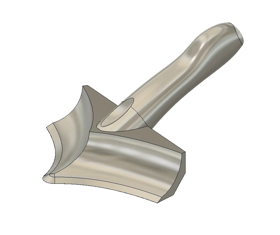 Cái tay cầm công thái học được làm từ sự kết hợp giữa tay cầm dao và dụng cụ cạo thông thường,
