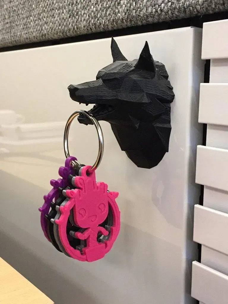 Phiên bản thu nhỏ của Nam Châm Đầu Sói, có hai lỗ để gắn nam châm 18mm. Thích hợp để treo móc chìa khóa hoặc các vật dụng nhỏ khác. Đã có cập nhật với lỗ lớn hơn cho nam châm gốm.