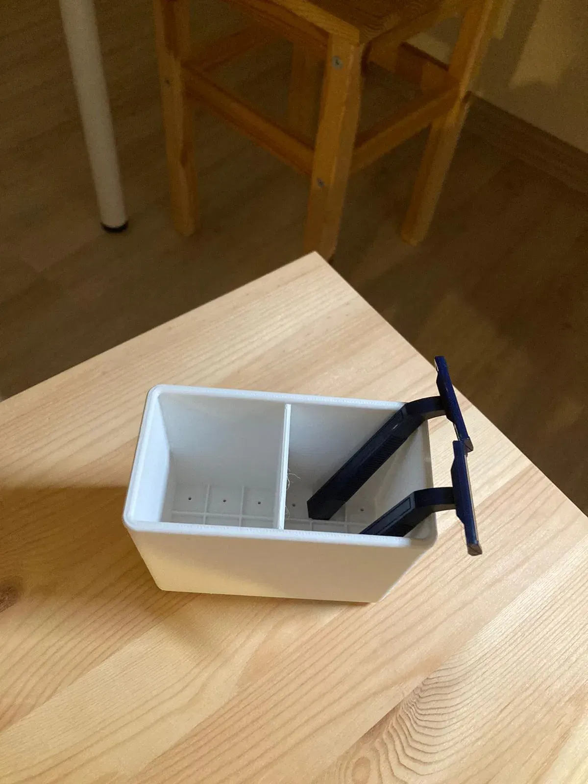Originally built for gillette storing. print without supports. I preferred printing legs seperately then glue them all. This is good for prevention supports. Please add 4 copies from leg file (..Ayak..) and print them seperately. I used infill 10, result is ok.