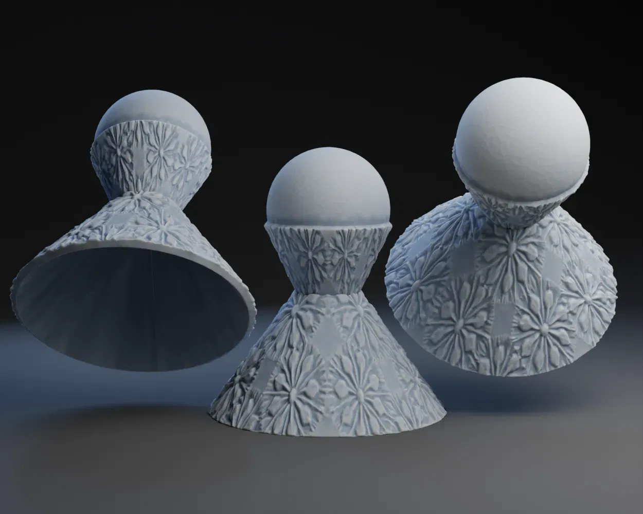 Thiết kế bằng Blender, có sự hỗ trợ từ StableDiffusion để tạo bản đồ độ sâu ảnh xám của các tinh thể băng.