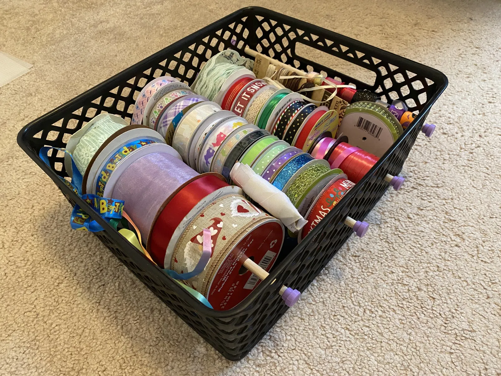 Kiếm một cái hộp nào đó rẻ tiền, có lỗ ở hai bên. Cắt vài cái dowel cho vừa với kích thước, rồi gắn mấy cái end cap này vô. Như hình là bạn có thể dùng nó để cất trữ nhiều loại cuộn vật liệu khác nhau.