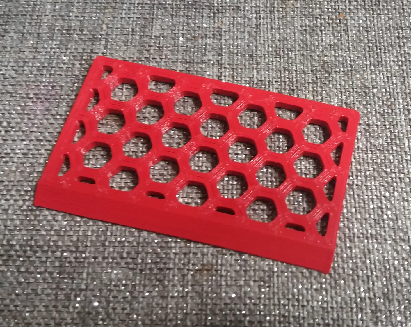 Tui tự tạo cây cào băng hình lục giác cỡ thẻ ATM này, kích thước 85x52x3mm, rất tiện lợi cho xe hơi của bạn. In không cần supports hay raft, lỗ tùy ý bạn, độ dày lớp 0.2mm.