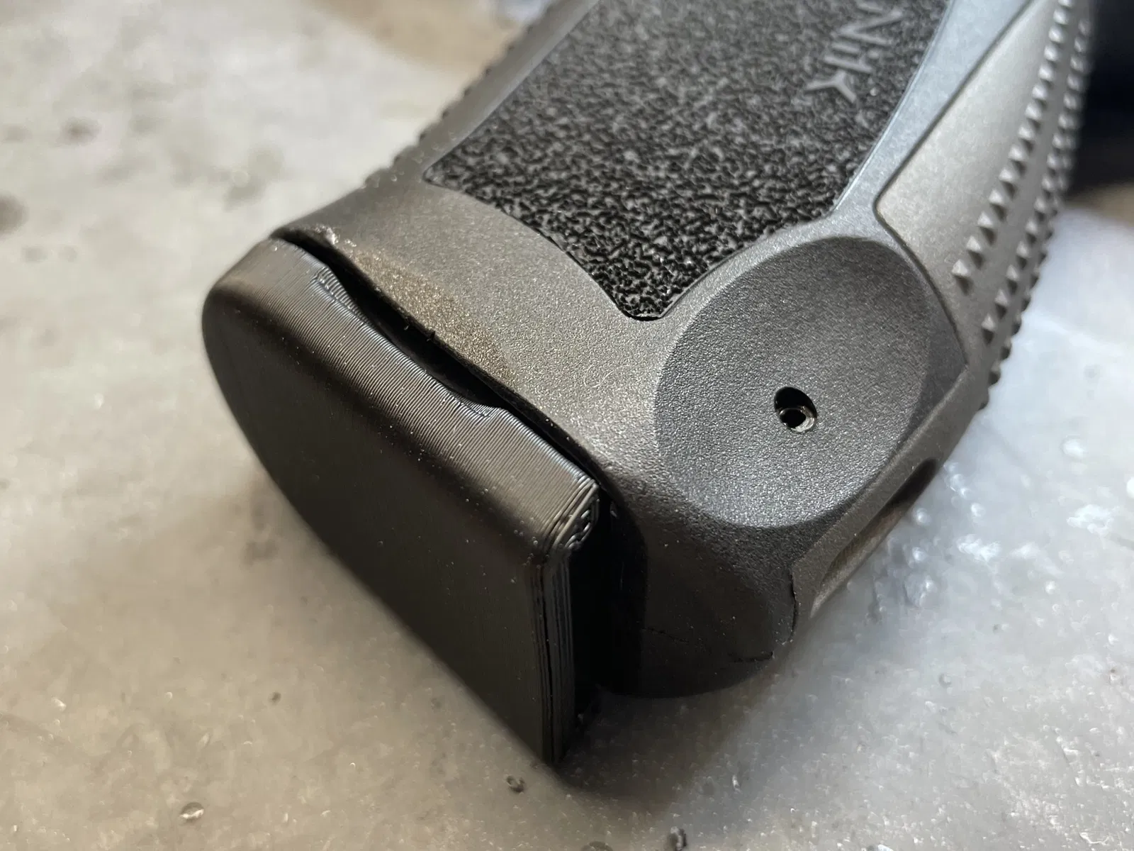 Tui đã thử độ bền của mấy cái mẫu này bằng cách lắp vô nửa chừng cây nòng đạn rồi dùng sức bẻ cho tới khi nó gãy. Cái mẫu Walther PDP ở trên bị gãy ở mấy đường nối lớp phía trên cái khe. Còn cái mẫu của tui thì gãy ngang hết bề rộng của đế nòng đạn, mà phải tốn nhiều sức hơn mới gãy được.