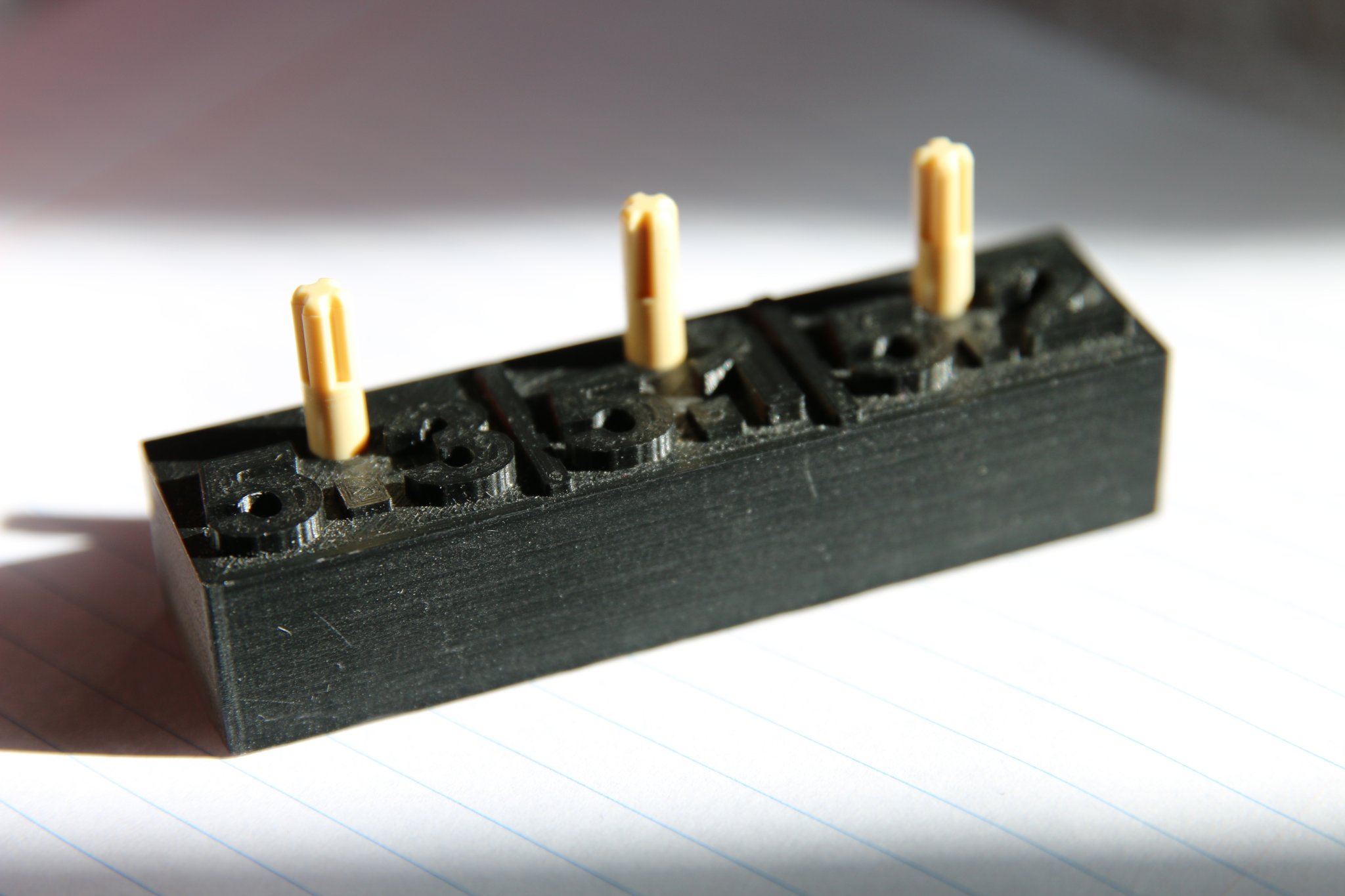 In my case, after determining that the largest pin hole size on the main testing board was the best, but could be better if larger, I made and printed this model to determine what would best for allowing lego axles to rotate easily. For me, it turned out to be a hole with a diameter of 5.3 mm.