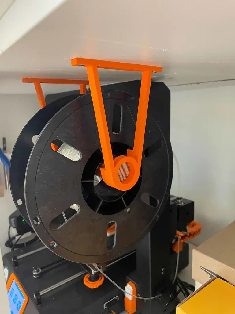 Giá treo cuộn filament gắn trần: Tui dùng vít gỗ để gắn (đường kính: 4mm, đầu vít: 8mm). Để treo thì bạn có thể dùng cây rèm (đường kính: 28mm) cắt theo độ dài mong muốn hoặc in một cây rod. Bạn cũng có thể dùng IKEA HUGAD. Đảm bảo sự gọn gàng cho không gian in ấn của bạn với giá treo tiện lợi này.