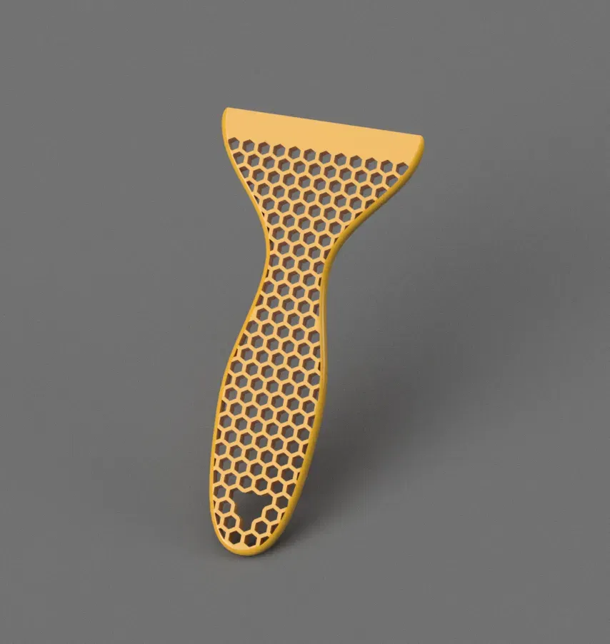Cái này là dụng cụ cạo béc in, nhẹ mà bền lắm nha. Nhiều người dùng nó để cạo mấy cái vật liệu in bị dính trên khay in á. Vừa tiện vừa dễ sử dụng, làm bằng vật liệu PLA nên in ra cũng okela lắm.