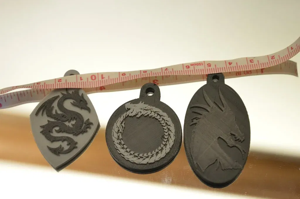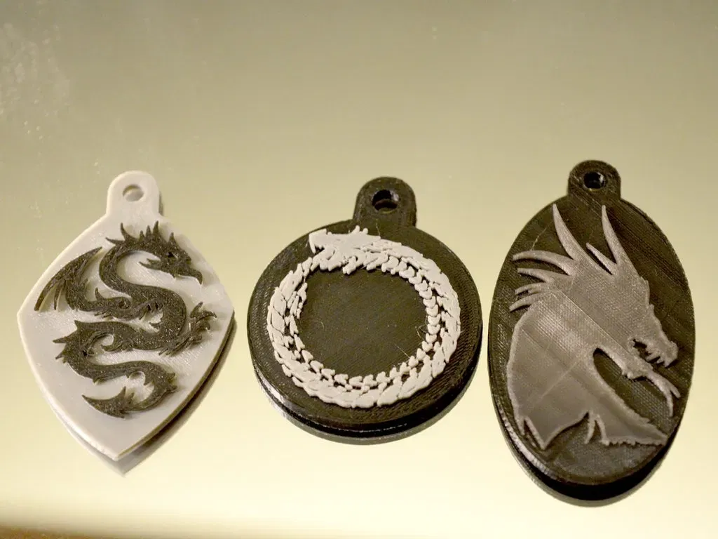 Những cái này là tui in bằng đầu phun 0.2mm, còn con rồng tròn tui in ở tỉ lệ 115%. Mấy bạn cứ thoải mái scale to lên nha, chắc cỡ 200% là vẫn vừa với hầu hết các khoen móc khóa đó.