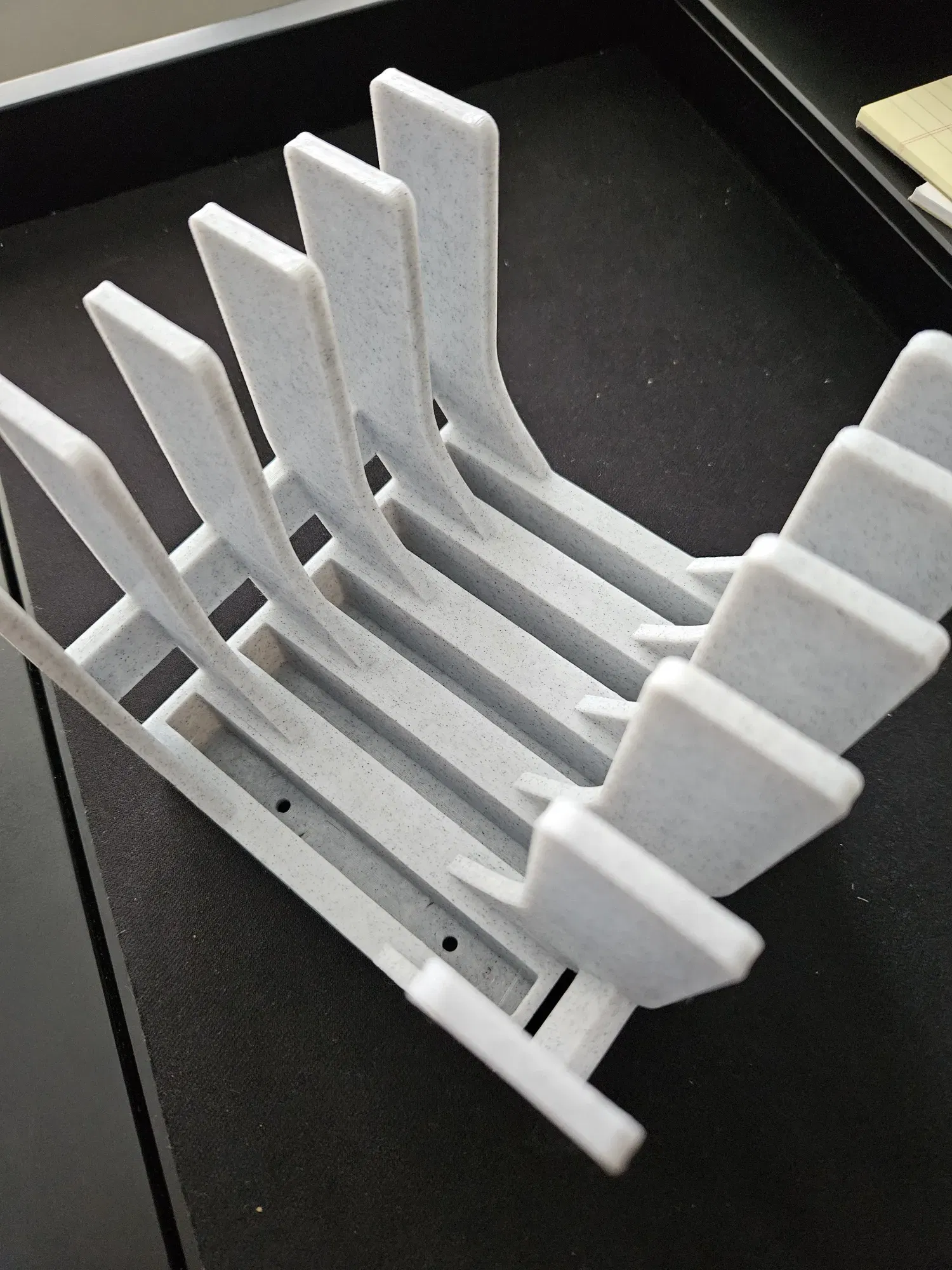 Làm khe rộng hơn để đựng nắp hộp theo chiều ngang và chứa được nắp hộp lớn hơn. Thêm lỗ để bắt vít xuống ngăn kéo.
