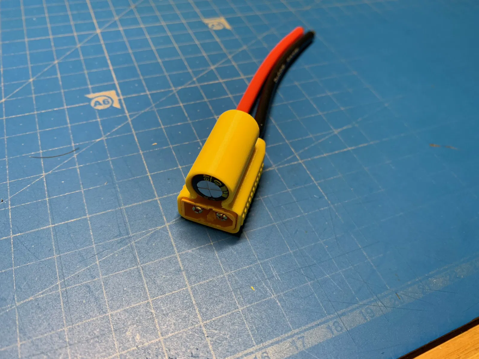 Tôi thiết kế nó để phù hợp với phích cắm XT60 đi kèm với bộ điều khiển bay SpeedyBee f405 v3. Tụ điện có thể dễ dàng hàn, gập lại và lắp vào vỏ. Để biết thêm chi tiết - tham khảo hình ảnh đính kèm.