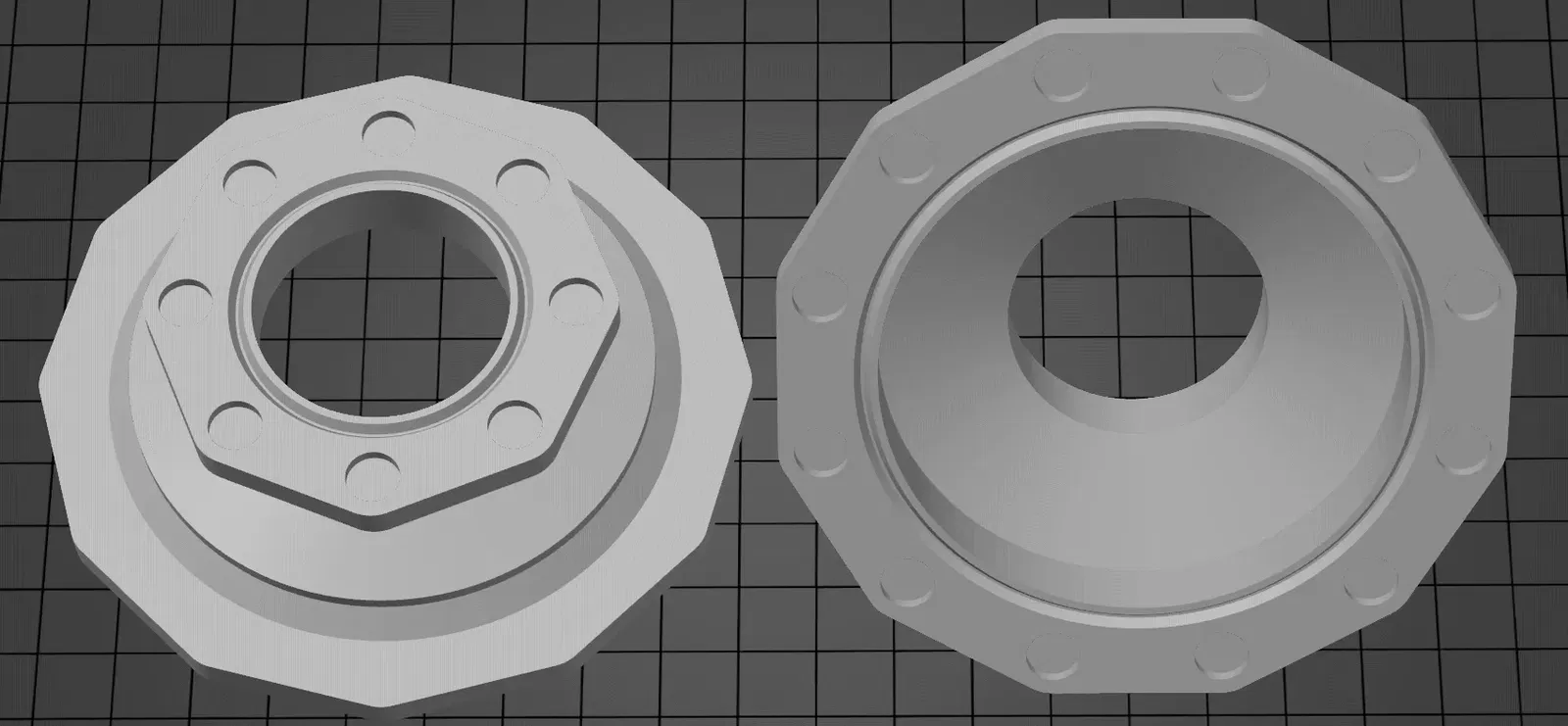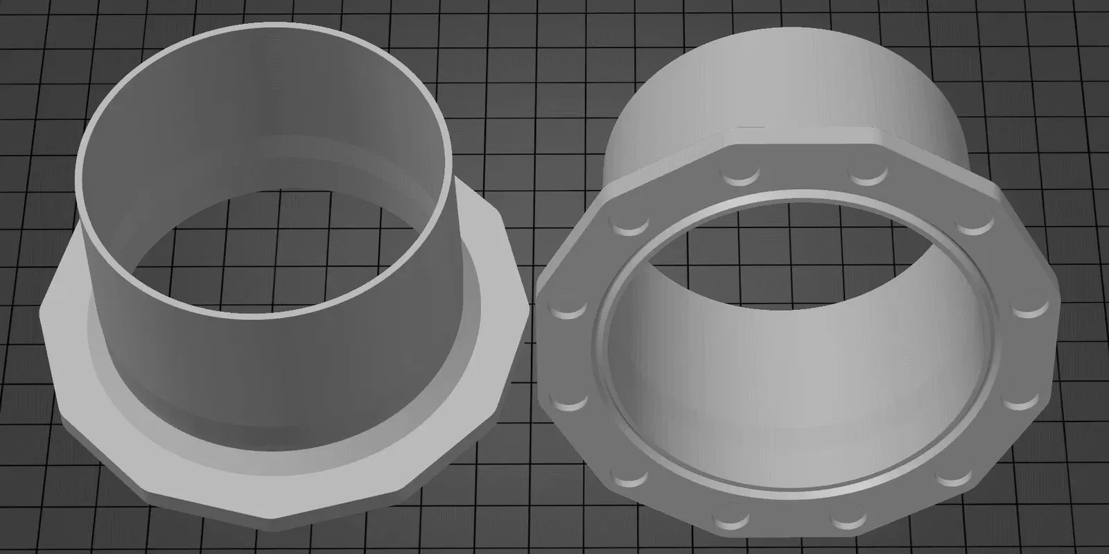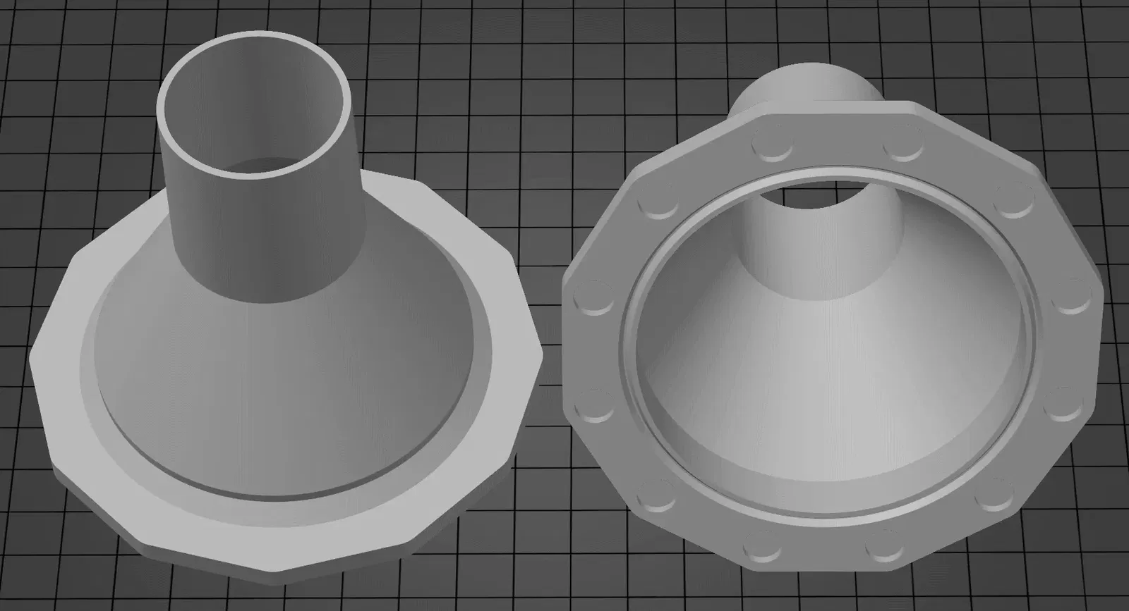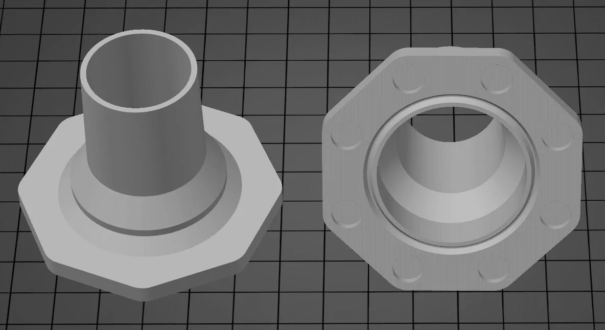 - TransitionLength: Độ dày của vùng phẳng. Khớp nối mặt bích từ tính Mục đích là tạo ra một kết nối tháo rời nhanh chóng. Cho phép di chuyển ống nhanh chóng từ thiết bị này sang thiết bị khác. Các nam châm nên được lõm nhẹ để hai mặt có độ kín tốt, cho phép thêm chiều sâu nếu bạn muốn tránh các bộ phận hỗ trợ. 8 nam châm 10mm x 1.5mm có vẻ đủ để giữ một đầu nối 50mm cho máy hút bụi công nghiệp. Về nam châm, bạn sẽ cần các cực đối diện để các mặt hút nhau. Đề xuất mỗi đầu nối có cực tính xen kẽ, một nửa dương một nửa âm, như vậy tất cả các đầu nối sẽ hút nhau. Một vòng định vị có thể được thêm vào để hỗ trợ định vị và giảm rò rỉ khí. Đề xuất mặt bích bao gồm một chỗ lõm cho vòng, sau đó nếu muốn bạn có thể in một vòng bằng TPU để hỗ trợ chống rò rỉ khí. Có vẻ không cần thiết. Lưu ý, việc thay đổi bất kỳ cài đặt nào (đường kính, kích thước nam châm, vòng định vị...) sẽ thay đổi vị trí nam châm và kích thước mặt bích. Nên ghi lại các cài đặt cho các bộ chuyển đổi trong tương lai. Cài đặt chính: * Đường kính mặt bích: Đường kính bên trong của khớp nối mặt bích.