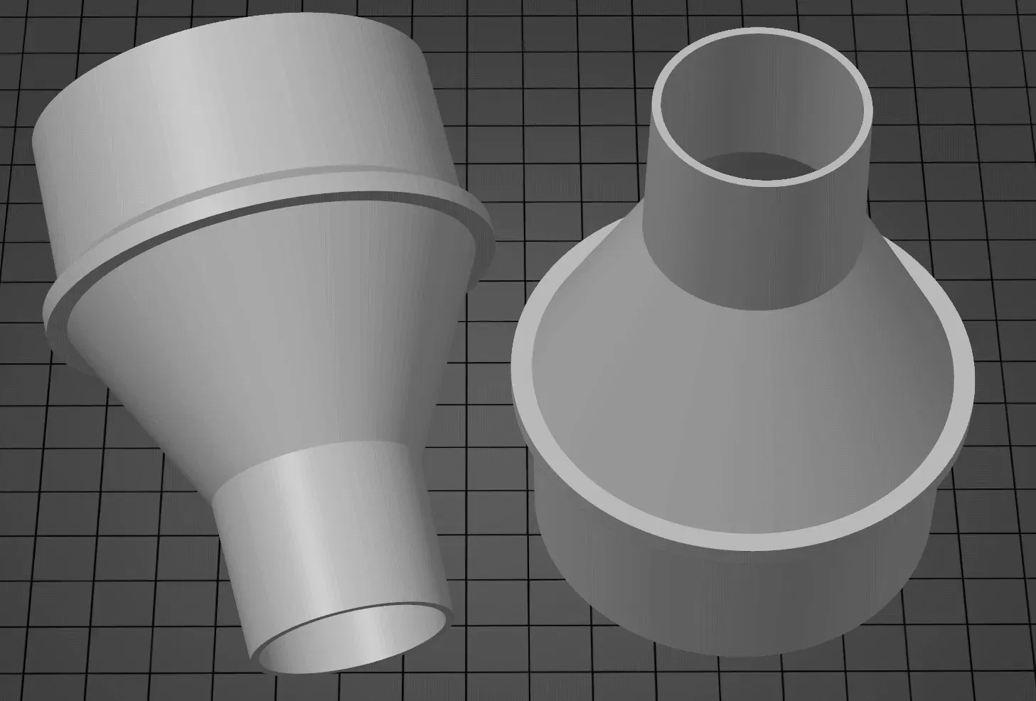 Dự án OpenSCAD tạo khớp nối ống hút bụi. Mục đích là tạo ra các khớp nối cho phép kết nối ống hút bụi và dụng cụ có đường kính khác nhau. Các cài đặt tham số hỗ trợ một vài loại kết nối. Các loại kết nối có thể được sử dụng ở hai đầu của bộ chuyển đổi. Tùy chọn: * Đầu nối: Khớp nối ống