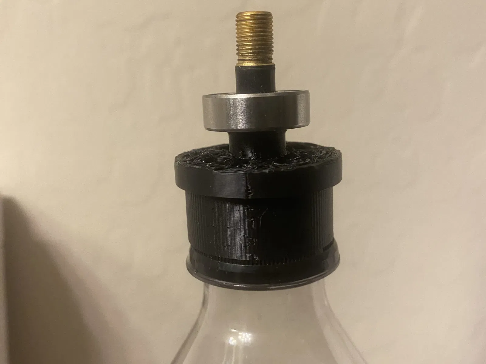 Remix của một nắp chai tuyệt vời bởi 3D-Academy. Tôi đã chỉnh sửa nó để bạn có thể chèn một thân van xe đạp tiêu chuẩn. Bằng cách này, bạn có thể gắn một bơm xe đạp vào chai và tăng áp suất cho nó. Bất kỳ ai quen thuộc với việc sử dụng PET để làm sợi in 3D sẽ biết điều này dùng để làm gì (áp dụng nhiệt vào chai trong khi nó đang được tăng áp để làm cho chai mịn màng và dễ cắt thành dải kích thước đồng nhất để sử dụng với máy loại PolyFormer). Vòng bi mà tôi đã hiển thị cùng với sản phẩm của tôi là để sử dụng với một dự án khác mà tôi đang làm, vì vậy bạn có thể dễ dàng xoay chai trong khi sử dụng súng nhiệt. Còn nhiều điều hơn nữa sẽ đến với dự án đó sớm thôi.