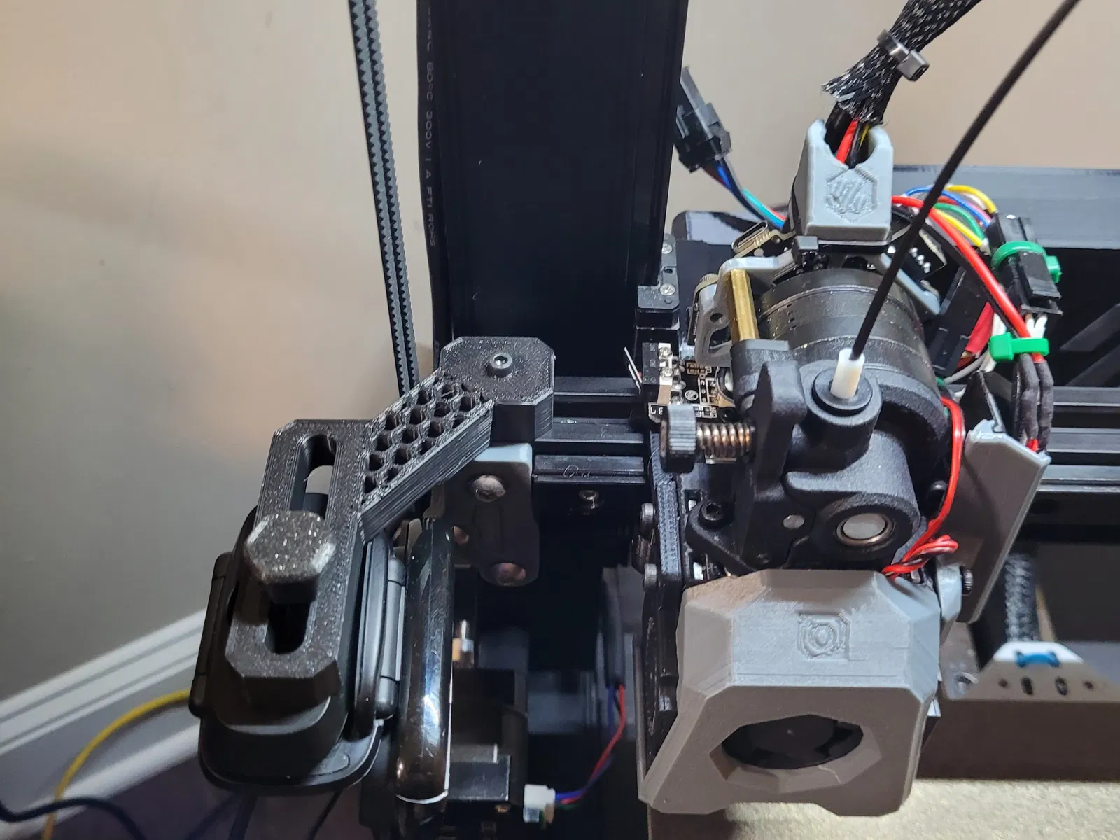 Gắn vào phía bên trái của gantry bằng một con vít M3 và T-nut. Nó có khe v-slot để giữ cho thẳng.