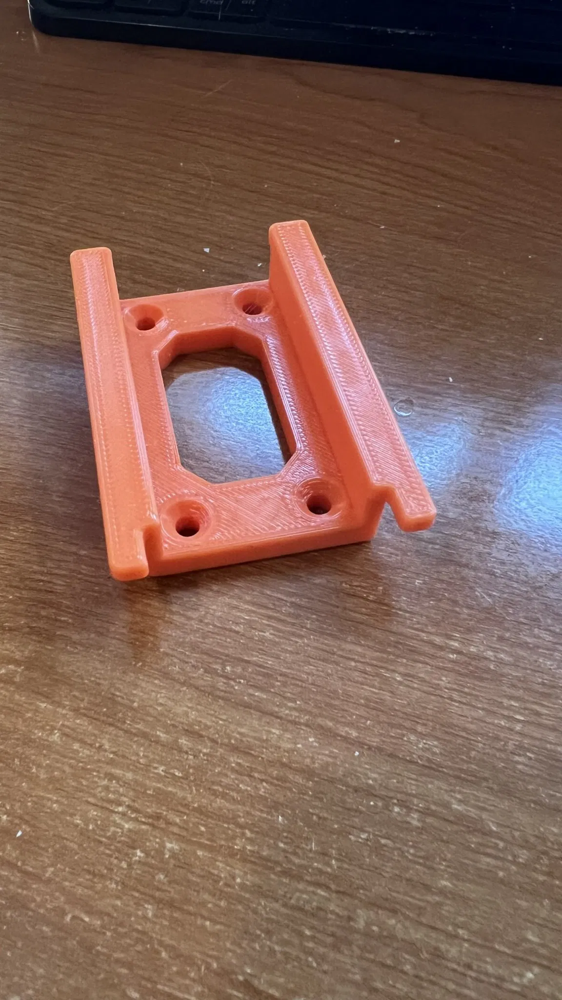 I started with Ben Rigsby's battery hold and modified it slightly as I'd be putting this into a particle board shelf. I wanted extra screws so that I was sure it would stay in place.