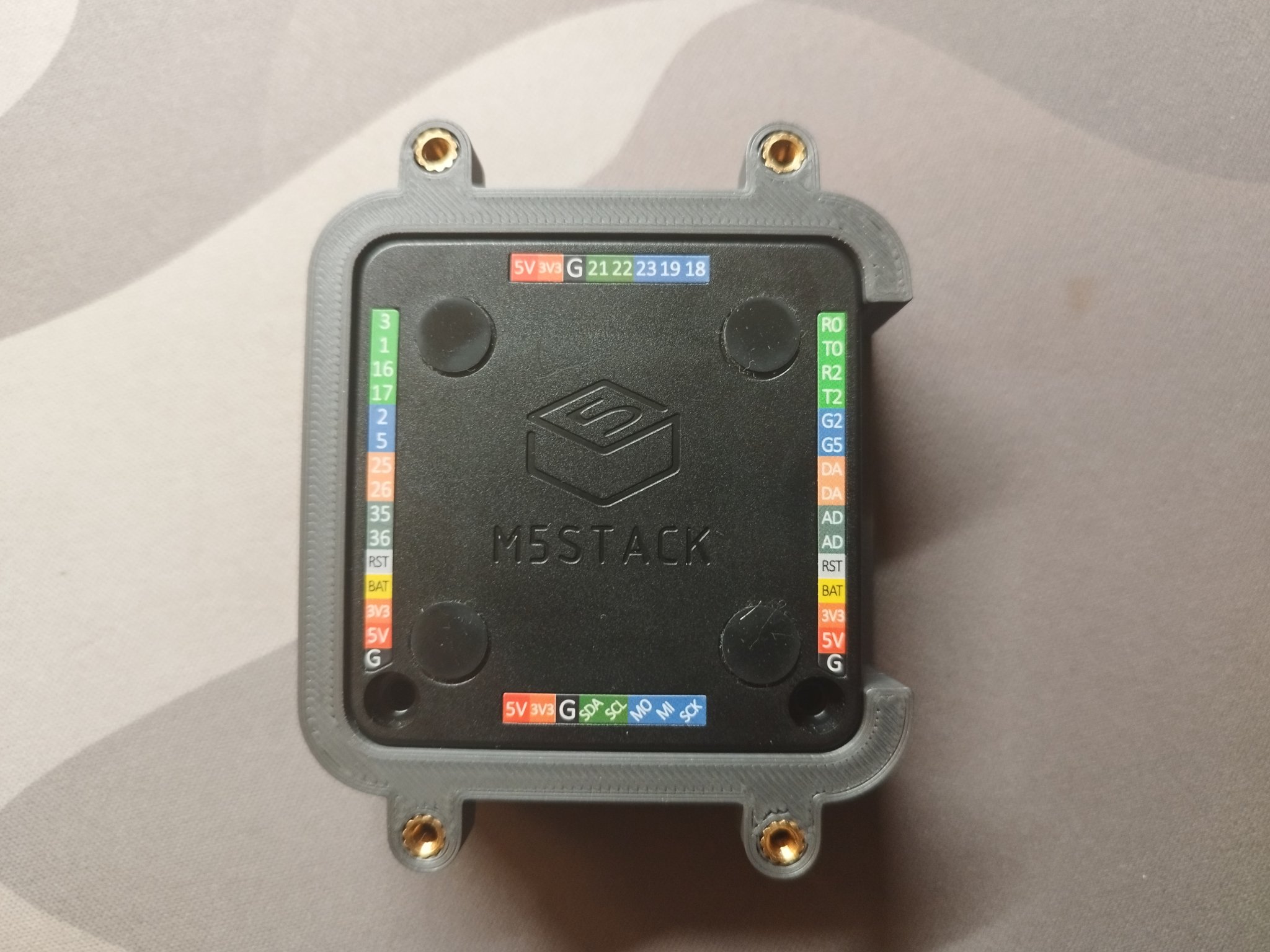 Một cách dễ dàng để gắn m5stack core basic của bạn lên các bề mặt phẳng. Bạn sẽ cần 4 viên ren M3. Tôi đã dùng loại viên ren của CNC Kitchen, bạn cũng có thể mua từ nhiều nhà bán lẻ khác.
