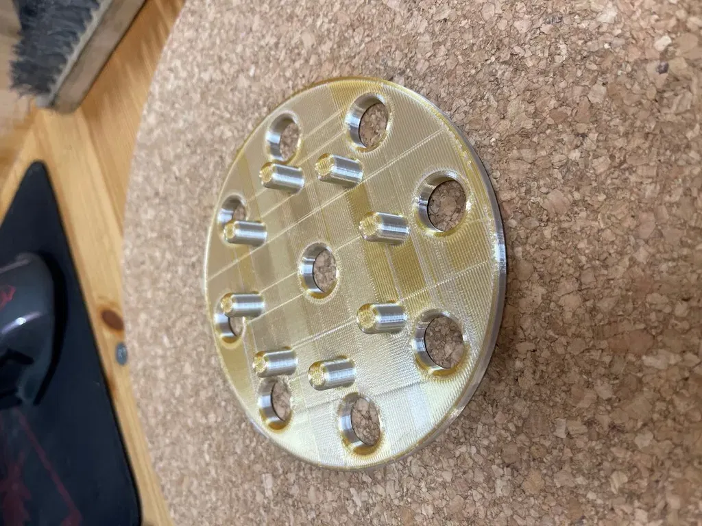 Tui cần một cái tool đơn giản để canh cái giấy nhám 125mm trên cái máy chà nhám quỹ đạo Bosch và Ryobi của tui. Căn mấy cái lỗ cho khớp hết trơn là thấy mệt rồi.