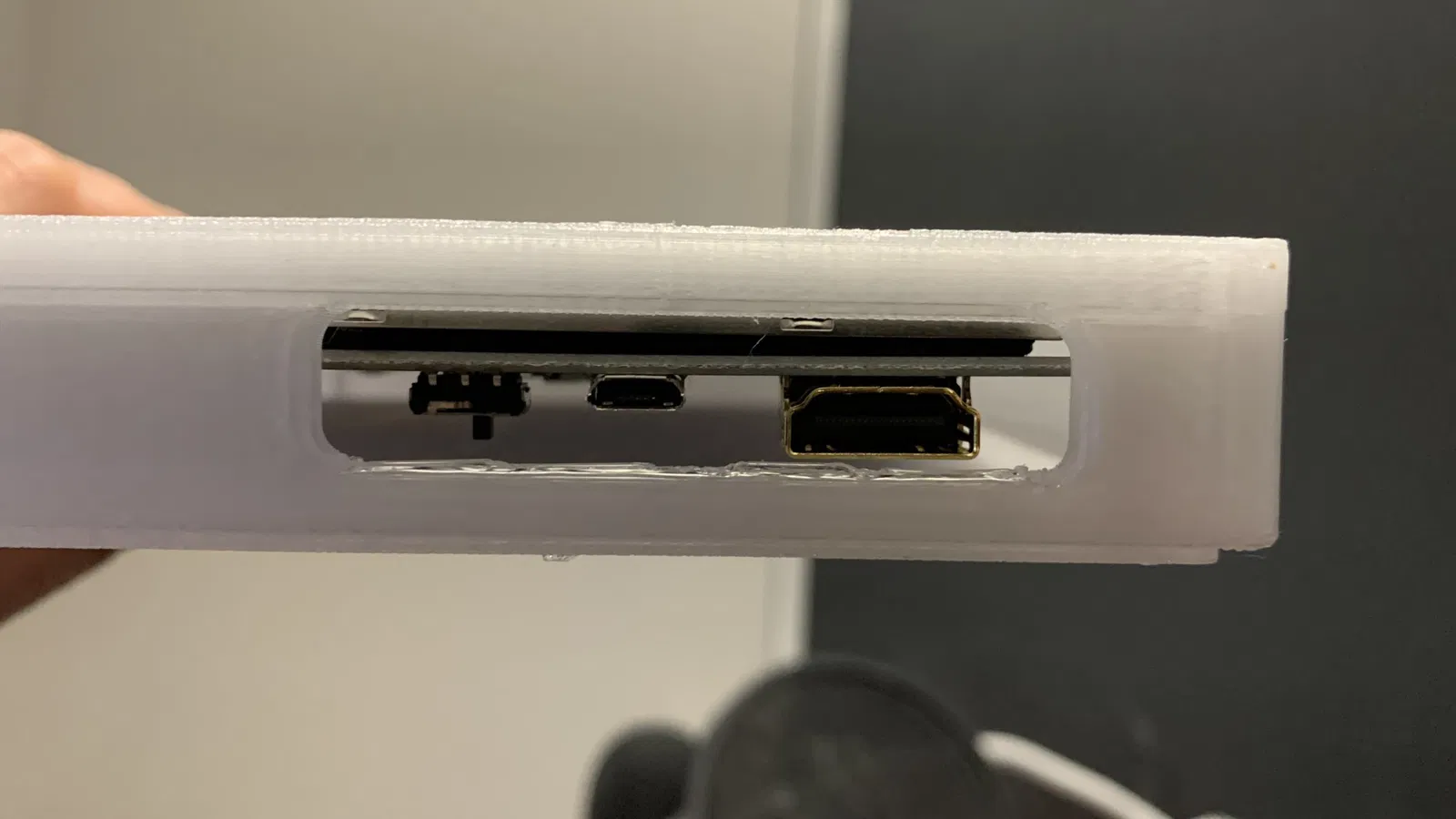 Printed with transparent PETG, 10% infill and 3 wall loops. Play with infill patterns for designs if you're using transparent filaments! Don't forget to use supports for the HDMI port. Tree support on build plate only recommended.