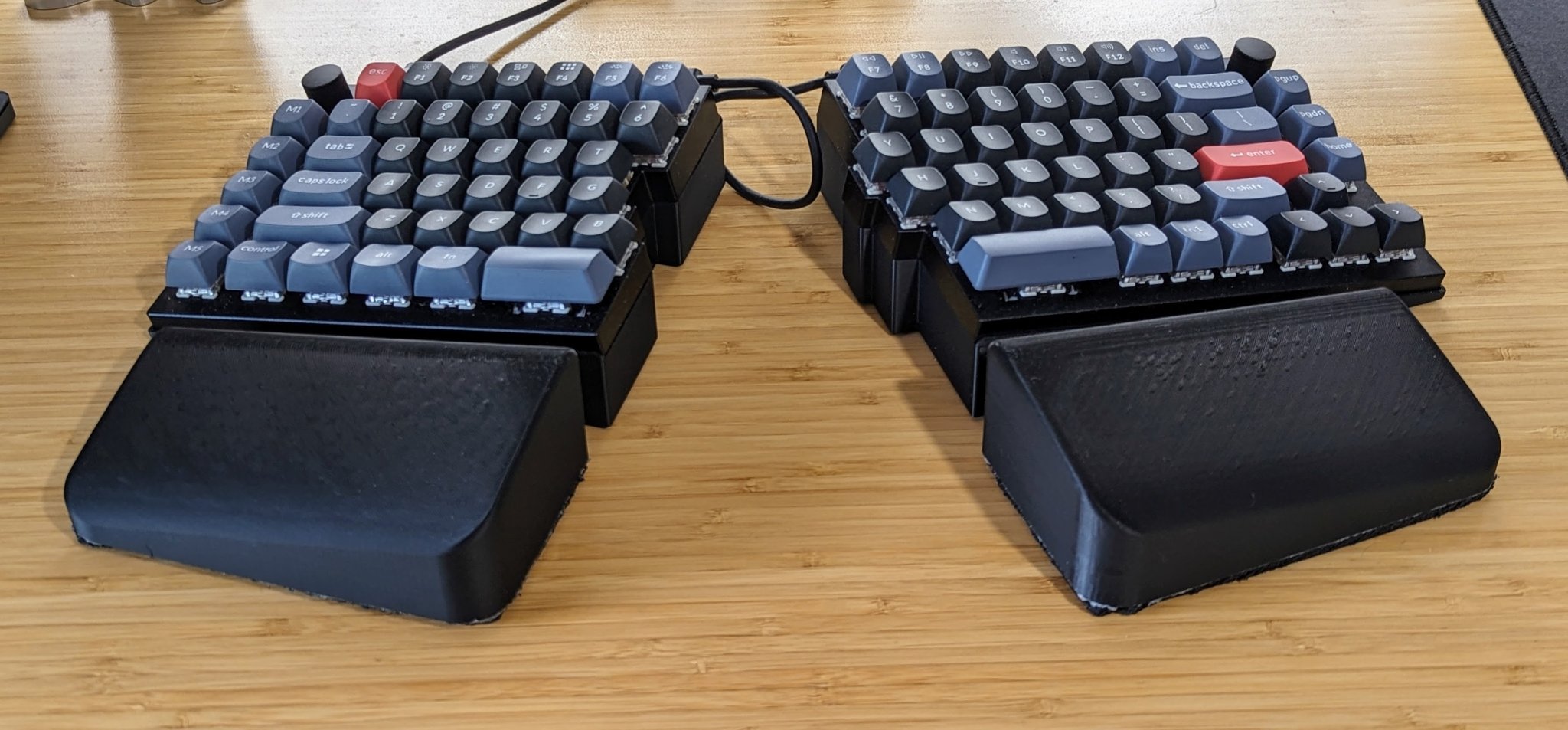Một cặp kê tay dạng lều cho bàn phím. Thiết kế để phối hợp với bộ Keychron Q11 Tenting Kit, có thể tùy chỉnh góc lều và dán thêm cao su để tăng độ bám và giảm rung lắc.