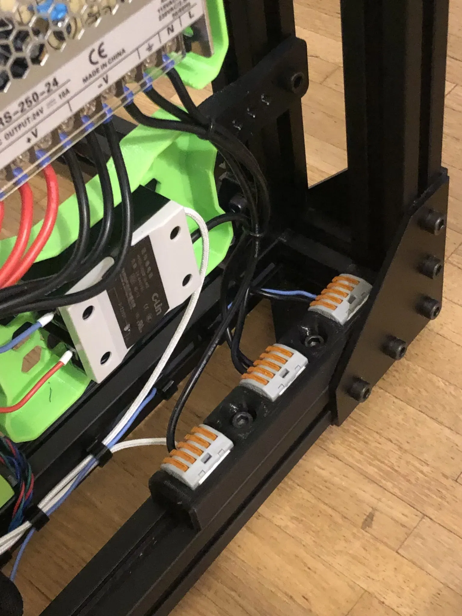 Giá đỡ cho profin nhôm rãnh 3030 để giữ ba bộ chia nguồn WAGO. Ban đầu được thiết kế cho Rat Rig V-Core 3.