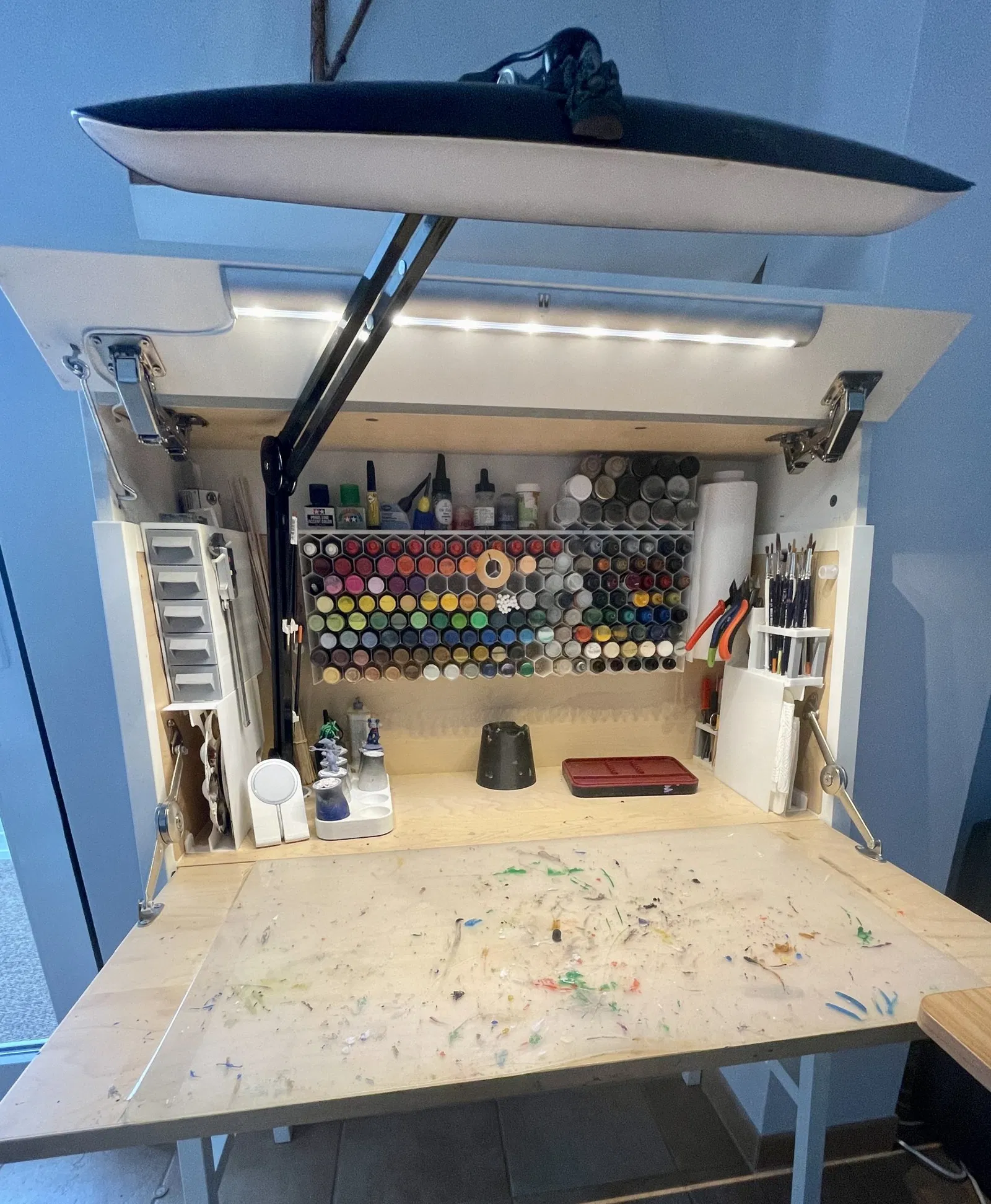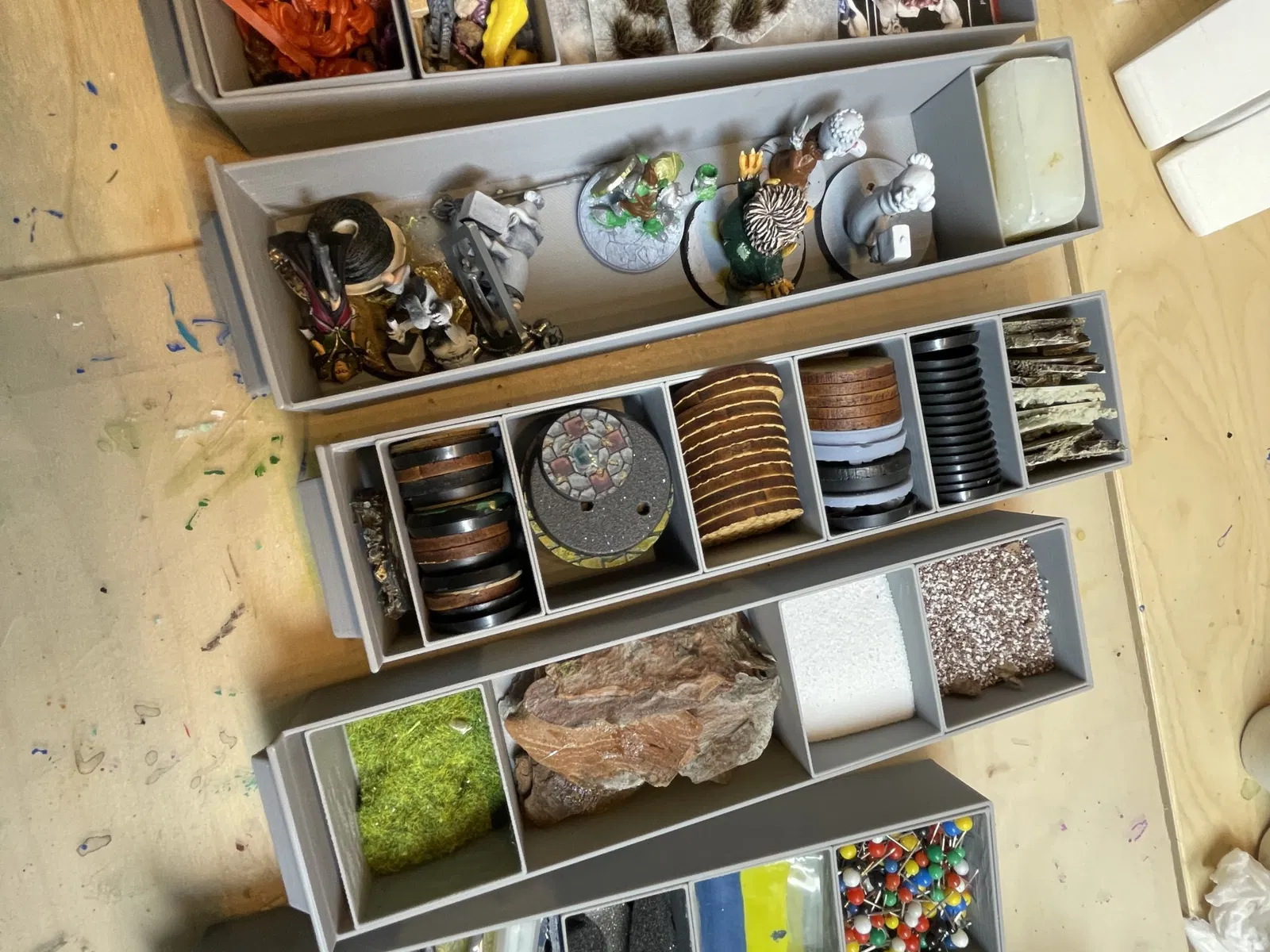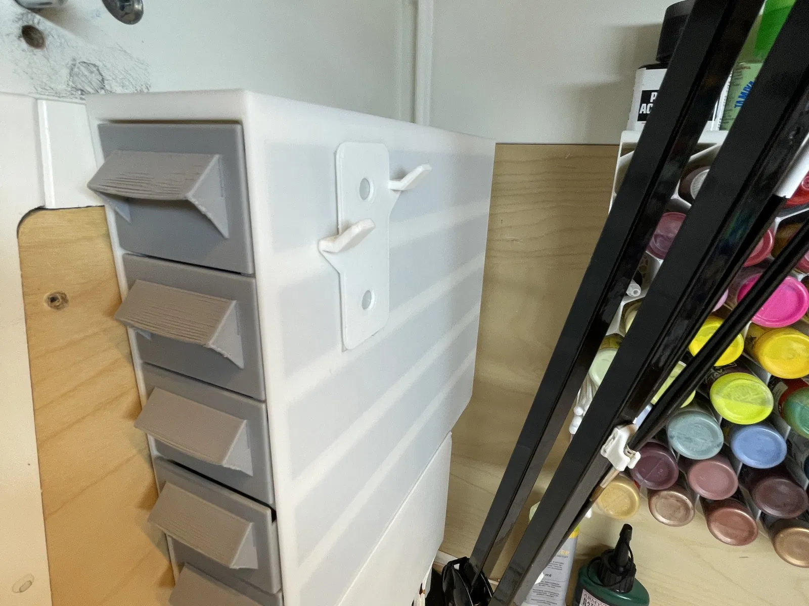 Tui làm một lô hộp có thể tháo rời để bỏ vô mấy ngăn kéo dài và hẹp, sắp xếp mấy món đồ nhỏ xíu trong bàn làm việc của tui nè. Do mấy cái hộp này xài không có ổn nếu thiếu mấy cái ngăn kéo, còn mấy cái ngăn kéo thì cũng không xài được nếu thiếu mấy cái hộp, nên tui có để file cho tất cả các bộ phận luôn nha. Mọi lời khen và cảm ơn rất nhiều tới @Yanev vì một thiết kế tham số (parametric) tuyệt vời. Hộp có ngăn kéo dạng tham số của Yanev | Tải mô hình STL miễn phí | Printables.com Tui đề xuất mọi người nên xem qua thiết kế tham số siêu dễ dùng này để tự làm một bộ ngăn kéo tùy chỉnh cho riêng mình. Toàn bộ các bộ phận in 3D tui đã dùng trong dự án sắp xếp bàn làm việc cho tới giờ: Giá treo chai nhỏ sơn gắn tường của ATree | Tải mô hình STL miễn phí | Printables.com Giá đỡ chai nhỏ sơn (35mm) của ATree | Tải mô hình STL miễn phí | Printables.com Nắp bản lề bàn gấp Ikea PS 2014 của ATree | Tải mô hình STL miễn phí | Printables.com Giá đỡ tường cho khay sơn ướt Army Painter của ATree | Tải mô hình STL miễn phí | Printables.com Giá để cọ sơn hoặc dụng cụ - tối đa 28 cọ của ATree | Tải mô hình STL miễn phí | Printables.com Hộp có ngăn kéo dạng tham số của Yanev | Tải mô hình STL miễn phí | Printables.com Có lẽ là tay cầm vẽ thoải mái nhất hiện nay của flossi - Thingiverse Giá đỡ cọ của Ratthy - Thingiverse Lọ đựng nước rửa cọ của arnaud vgr | Tải mô hình STL miễn phí | Printables.com Giá đỡ MagSafe cho iPhone 12 mini của dreamseed - Thingiverse Giá đỡ kềm cho dự án bàn làm việc Ikea PS2014 của ATree | Tải mô hình STL miễn phí | Printables.com Giá đỡ giấy ăn - dọc - Dự án bàn làm việc Ikea PS2014 của ATree | Tải mô hình STL miễn phí | Printables.com Giá đỡ dụng cụ hoặc cọ v2 của ATree | Tải mô hình STL miễn phí | Printables.com Chế tác bàn Ikea PS2014: Bàn làm việc bí mật Ikea PS 2014 này có vài bí mật - IKEA Hackers