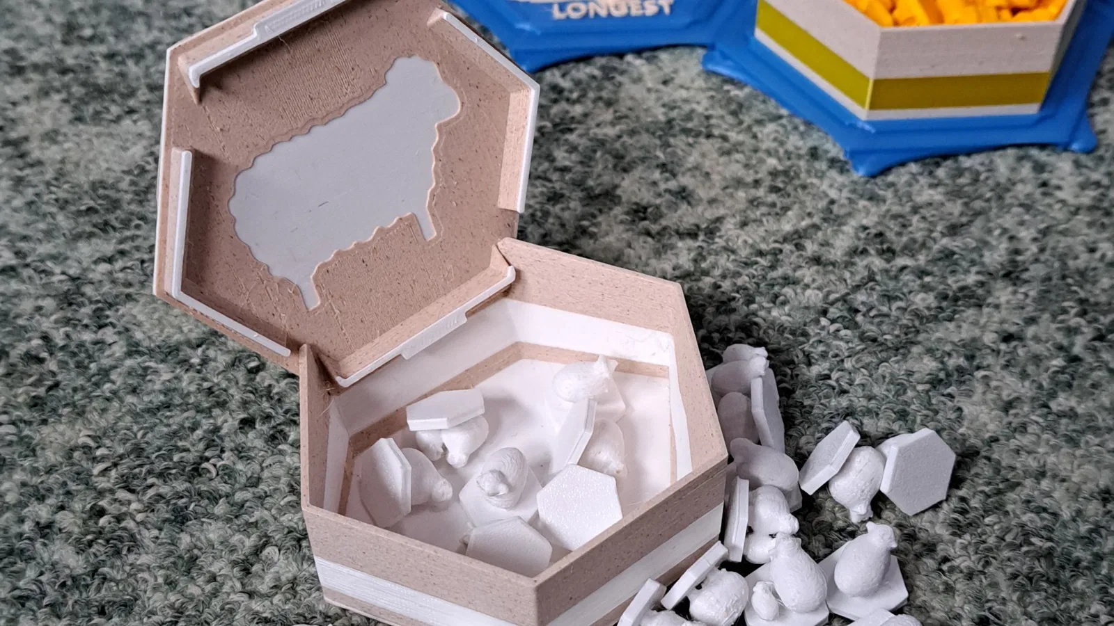 Mô hình 3D các tài nguyên cơ bản như len, ngũ cốc, gỗ, gạch và quặng cho game Settlers of Catan. Các mô hình nhỏ gọn, dễ nhận biết với đế hình lục giác. Tải xuống miễn phí để in 3D với cài đặt đơn giản, không cần support.
