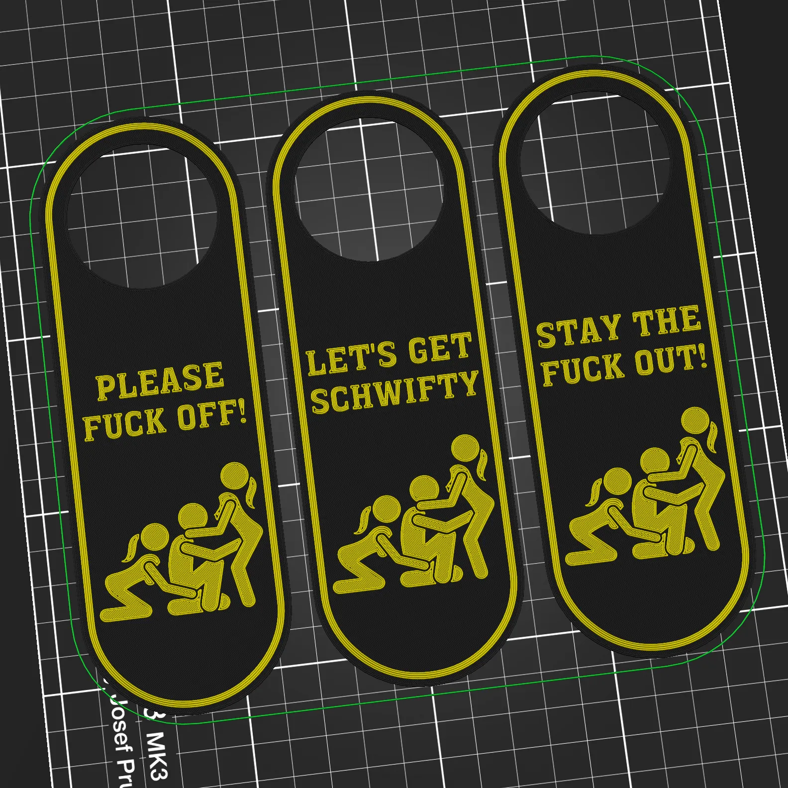 Móc treo cửa "threesome FFM" vui nhộn, phiên bản 3 cái với các dòng chữ khác nhau. Kích thước 170x58mm, hoàn hảo để thêm chút 'gia vị' cho phòng riêng của bạn.