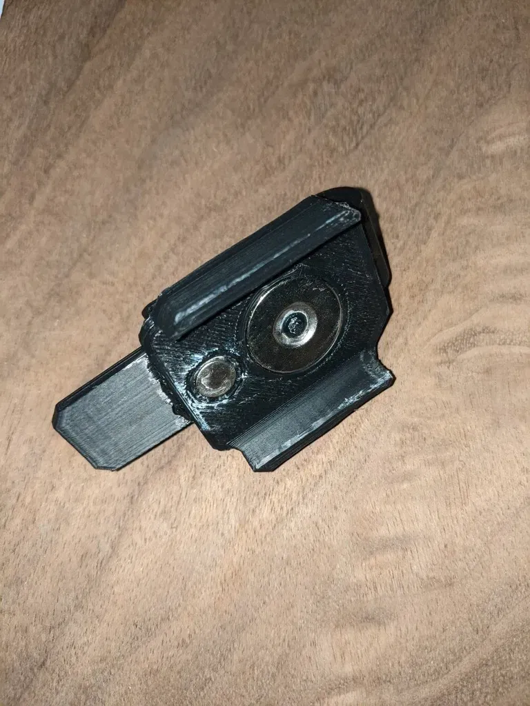Một bộ giữ tạp chí từ tính cho các tạp chí thép p365. phải tương thích với bất kỳ tạp chí thép nào có chiều rộng 32mm trở xuống. Cần hai nam châm, một cái 8mm và một cái 20mm với lỗ ở giữa 5mm. Hai phần được in riêng biệt bằng ABS và sau đó được hàn dung môi với acetone.