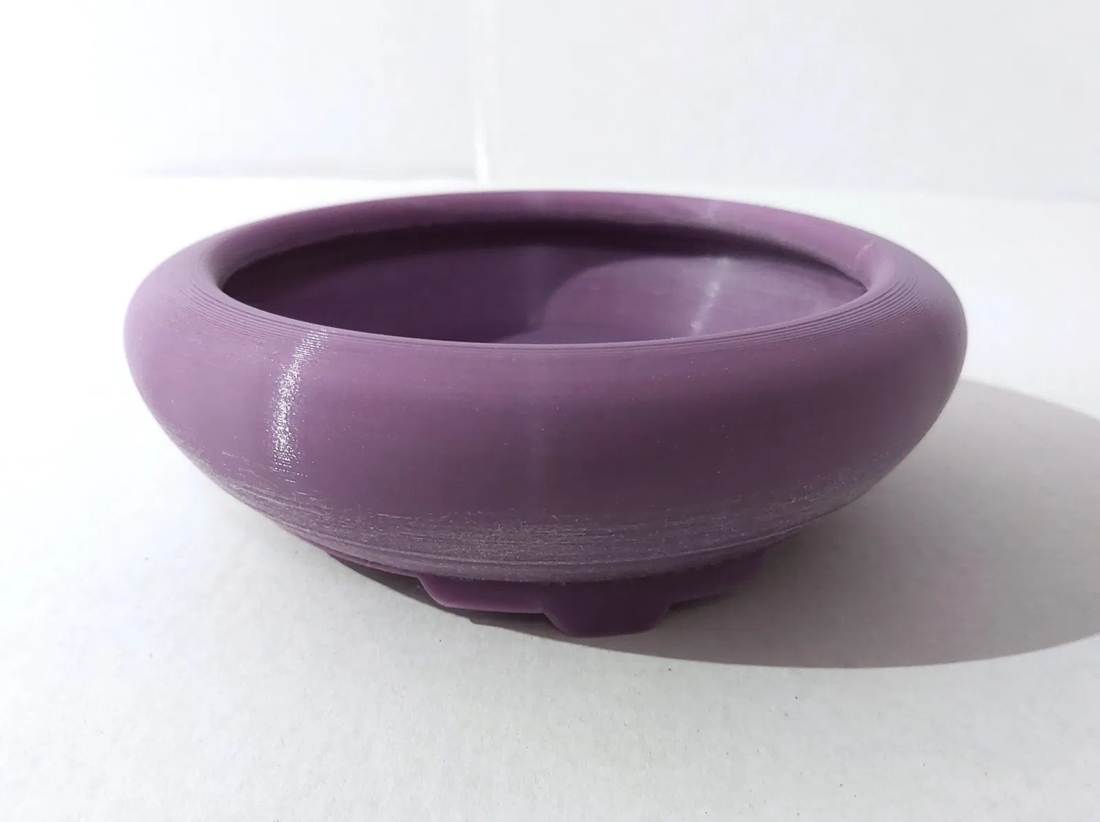 Bonsai Pot tròn cong phẳng (MAME) 131x131x41mm, hỗ trợ là cần thiết, ngay cả khi nồi và chân được in hết.