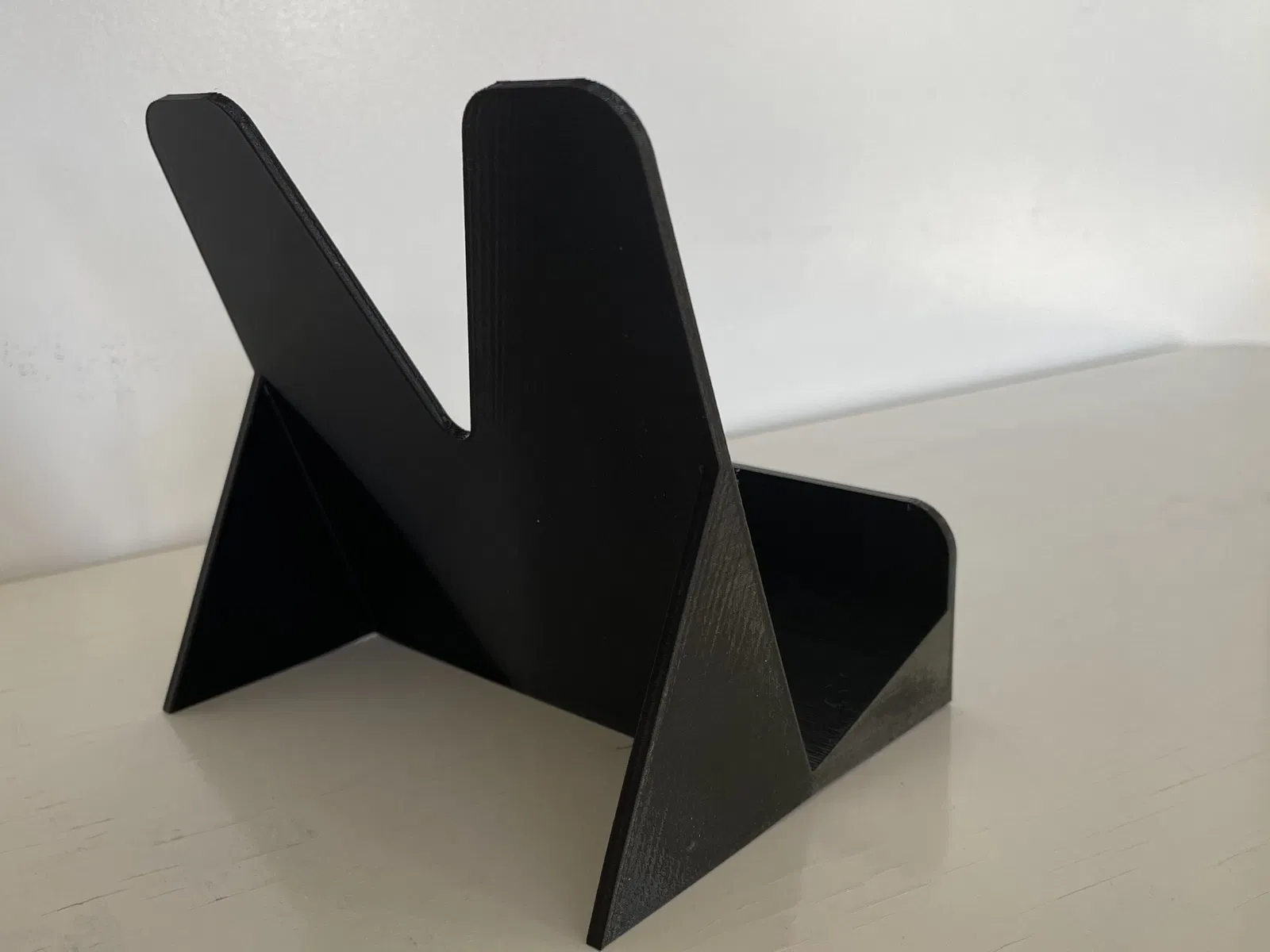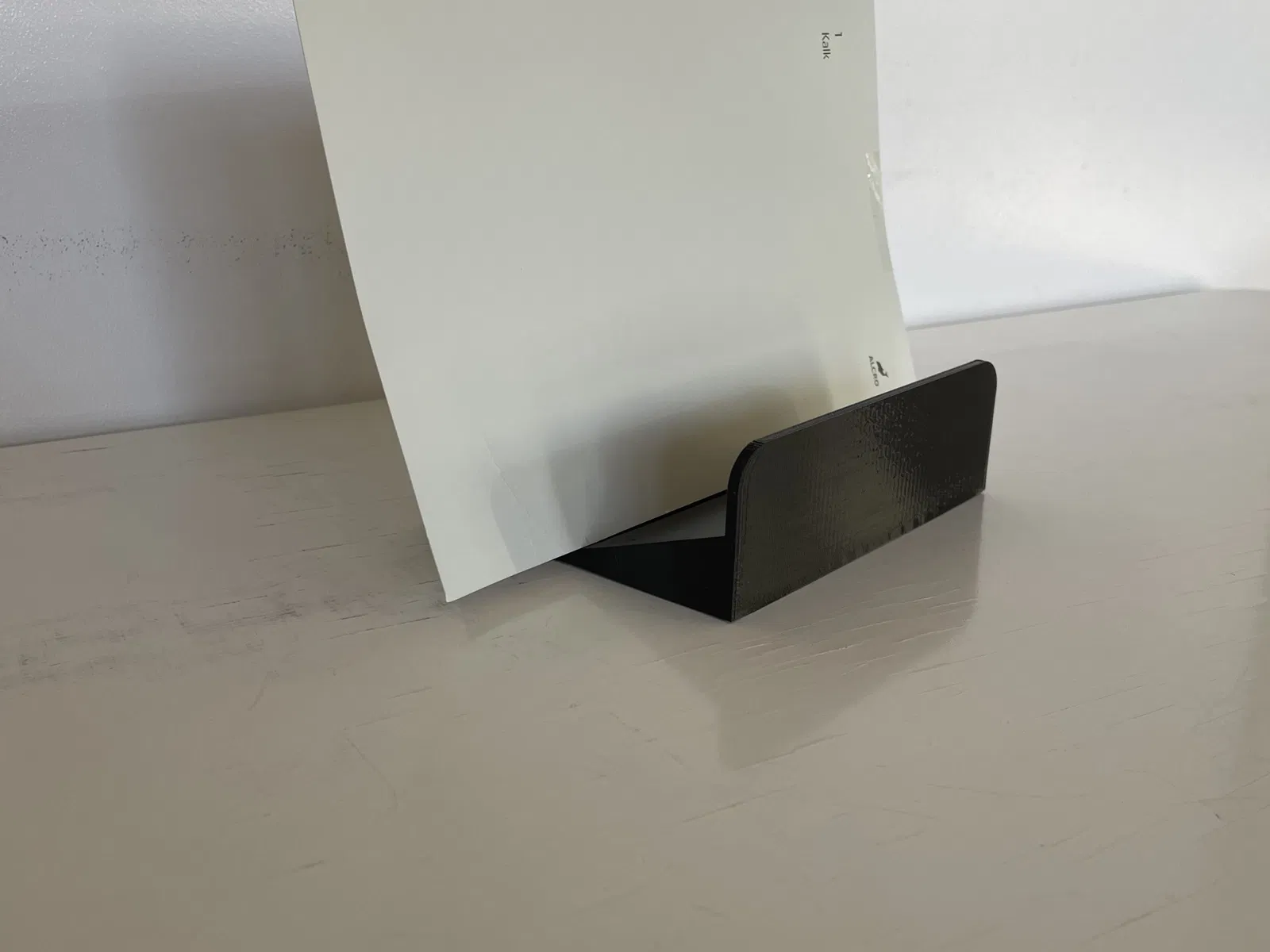 In bằng PETG không cần support. Thời gian in 6 tiếng 20 phút trên máy Prusa mini+. Chân đế đựng tờ rơi kích thước R: 120 mm, C: khoảng 120 mm, S: 100 mm.