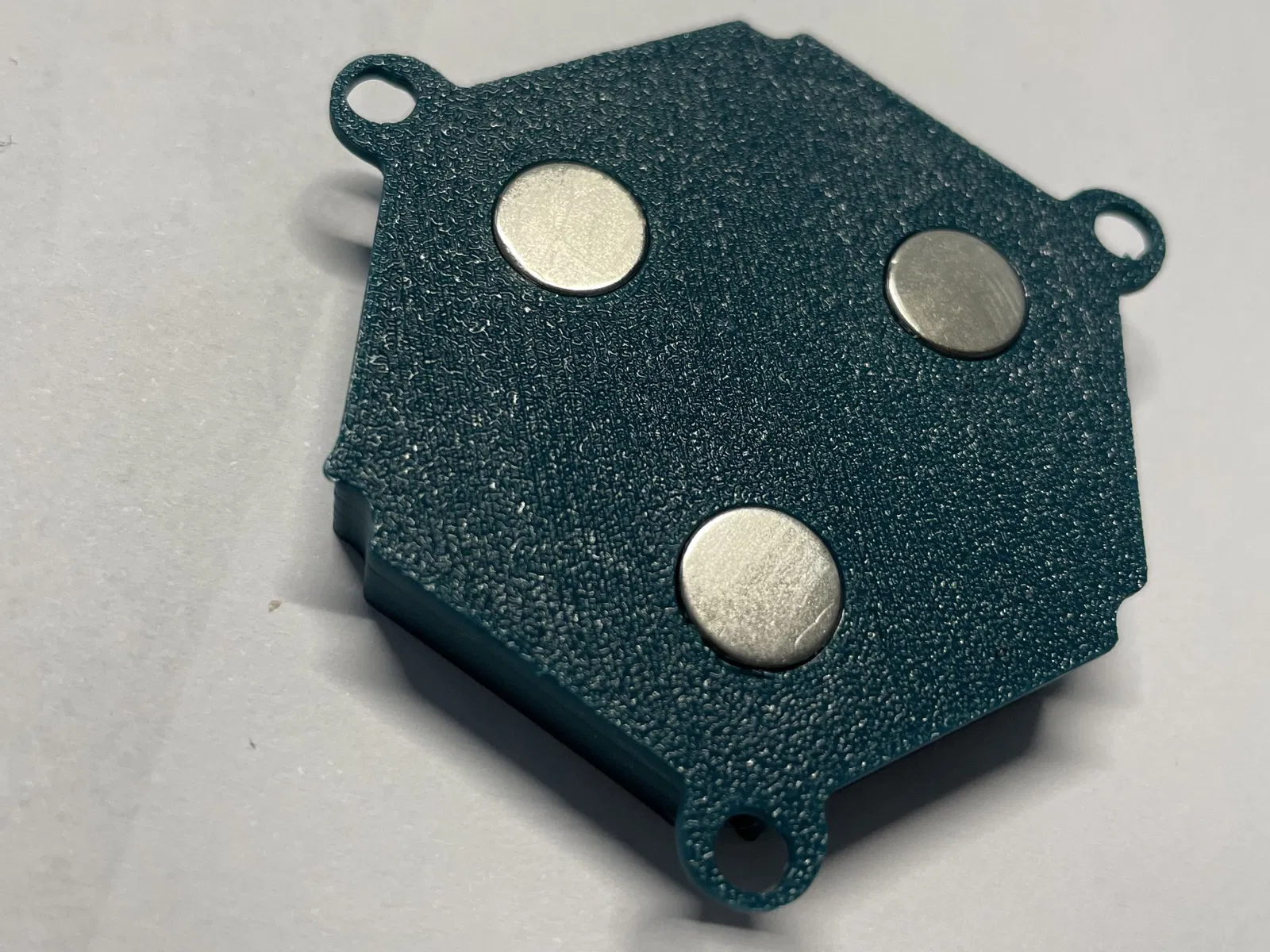 Tiếp nối mẫu holder trước, mẫu L-Boxx Hex này có thêm 3 nam châm 10x2mm để giữ nắp chắc chắn. Nam châm không được in sẵn mà cần dán vào sau khi in.