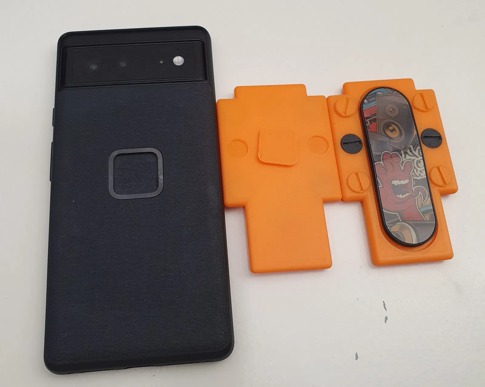 Dùng với ốp Peak Design mobile, đế gắn nam châm này cho phép bạn tùy chỉnh hoặc gắn kẹp ngón tay. Có các phiên bản cải tiến sử dụng ốc in, thiết kế mỏng gọn hơn, hoặc chia đôi để in đẹp hơn. Khuyên dùng độ cứng 50% cho phần gắn vào ốp.