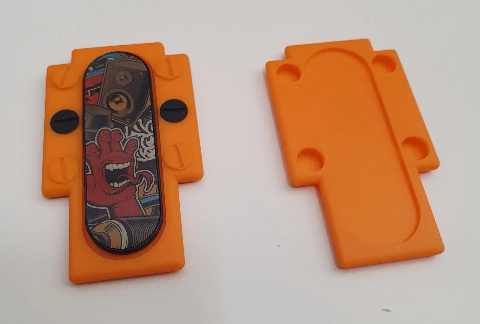 Đã thêm phiên bản v2, là phiên bản chia đôi, để in phần giữ làm hai mảnh, vì vậy bạn có thể là phẳng và có bề mặt đẹp hơn để gắn phần giữ ngón tay vào, và sau đó có thể giữ chúng lại với nhau bằng một vài con ốc, cũng được cung cấp trong hai phiên bản. Một cái phẳng, sẽ không cản trở khi bạn trượt ngón tay, và một cái khác có đầu lõm.