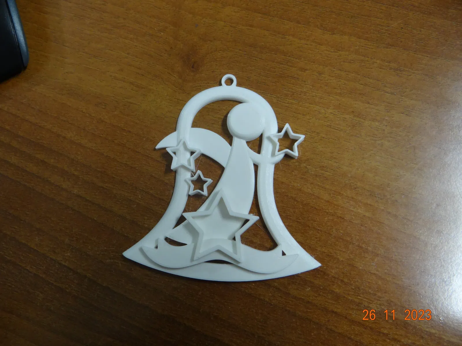 Một chiếc chuông Giáng sinh có hình thiên thần và các ngôi sao, thích hợp để trang trí cây thông Noel. Có thể in bằng PLA với nhiều màu sắc khác nhau, không cần support, và có thể điều chỉnh kích thước theo ý muốn.