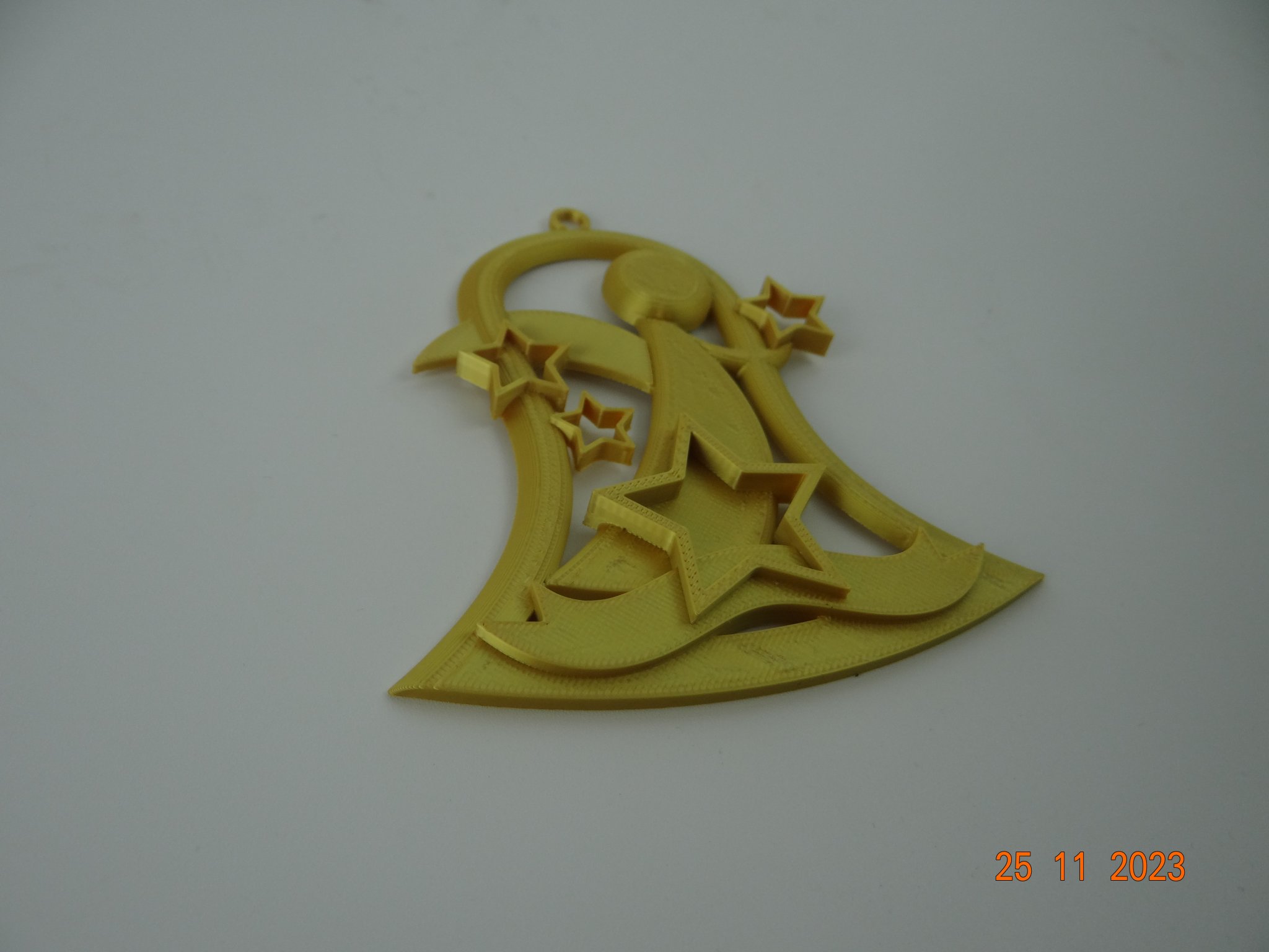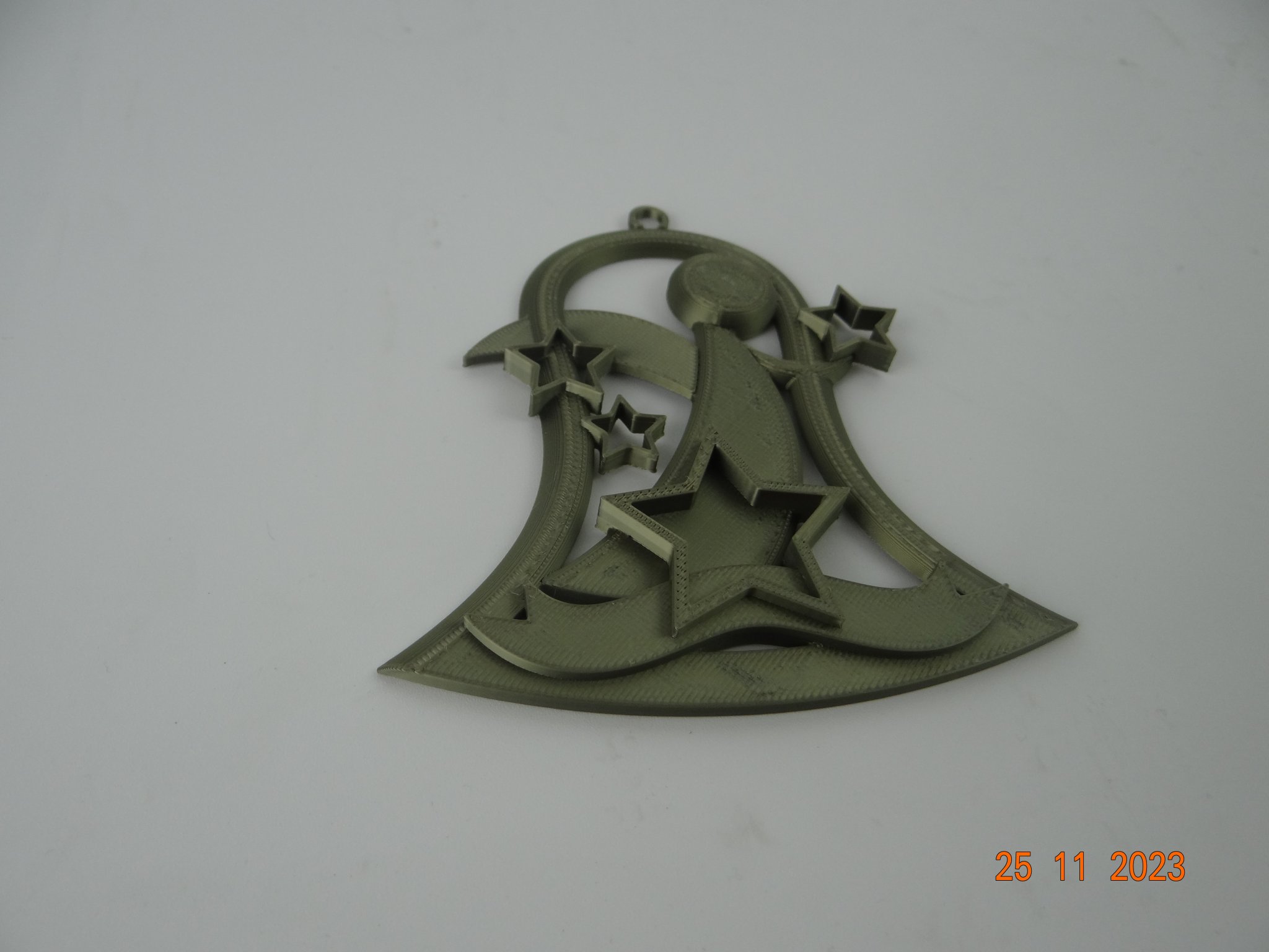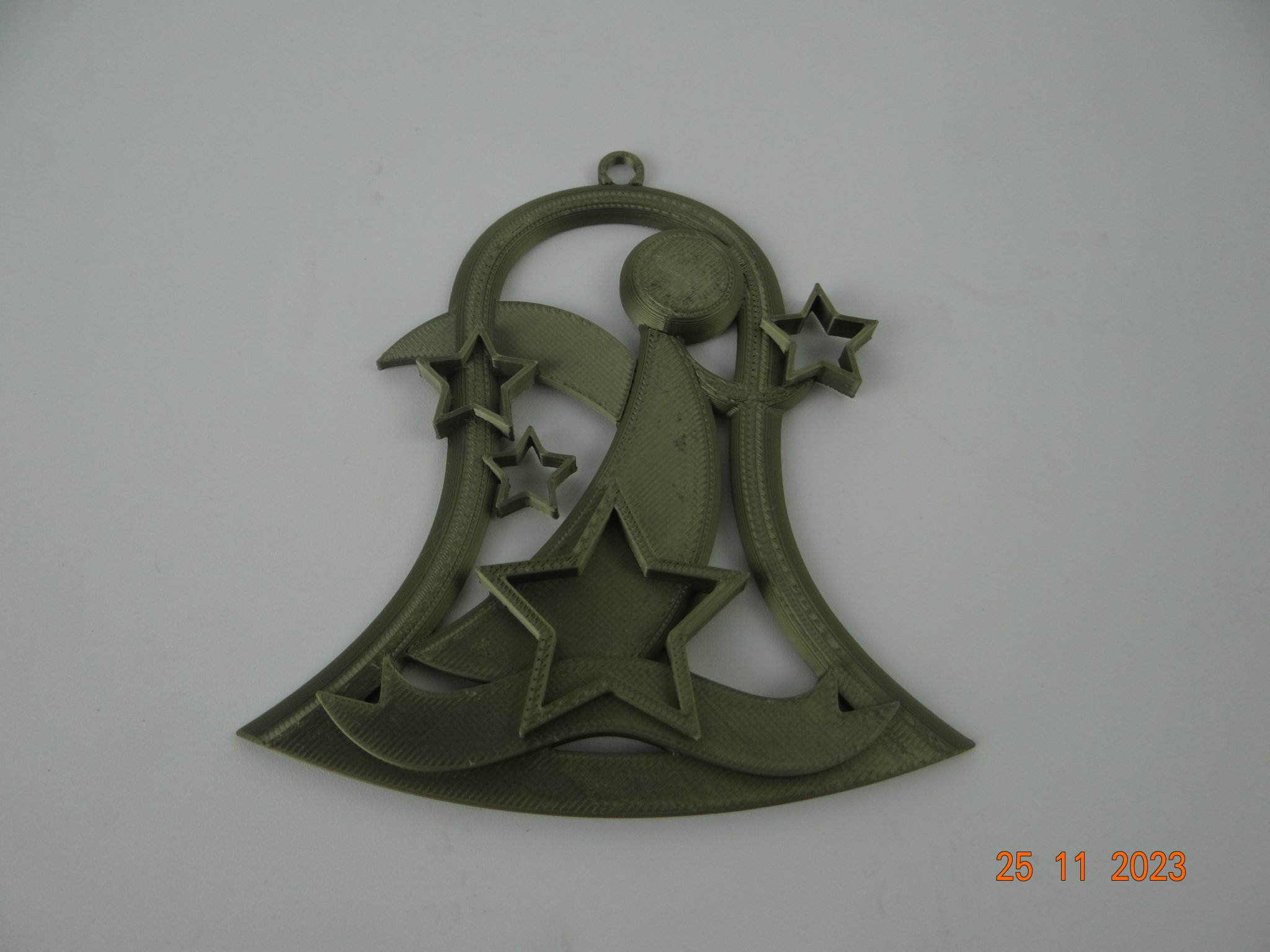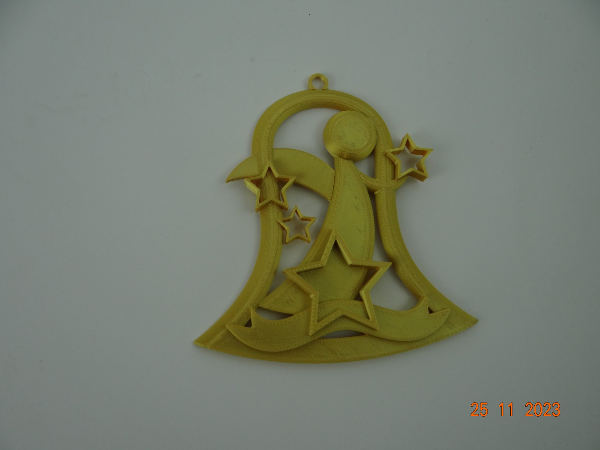 Một chiếc chuông Giáng sinh có hình thiên thần và các ngôi sao, thích hợp để trang trí cây thông Noel. Có thể in bằng PLA với nhiều màu sắc khác nhau, không cần support, và có thể điều chỉnh kích thước theo ý muốn.