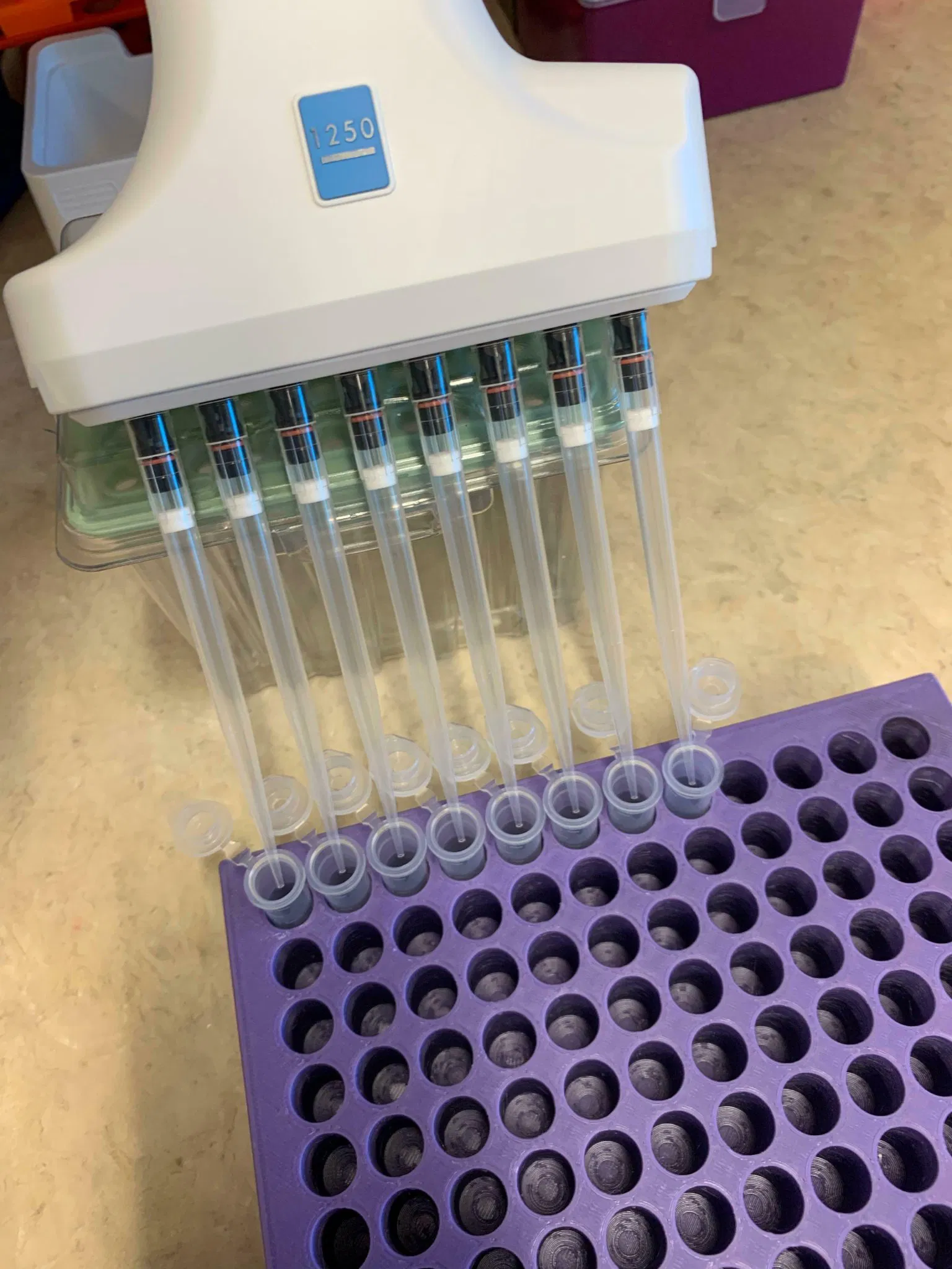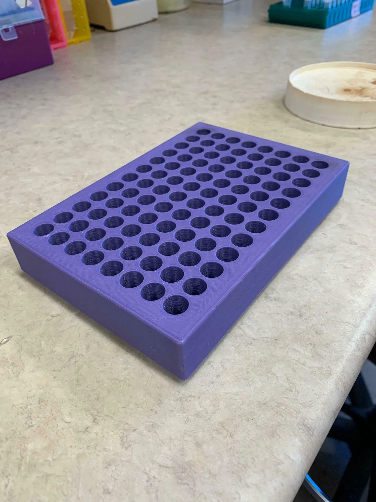 This is a rack for eppies designed specifically to work with Integra Multichannel Pipettes () This rack has exactly 13.5 mm in between each tube in every direction (default separation in the Integra pipettes), making it super easy to transfer liquids from tubes to 96 or 48 well plates. It holds 1.5, 1.7 and 2 mL eppies. Added some rubber feet for extra stability.