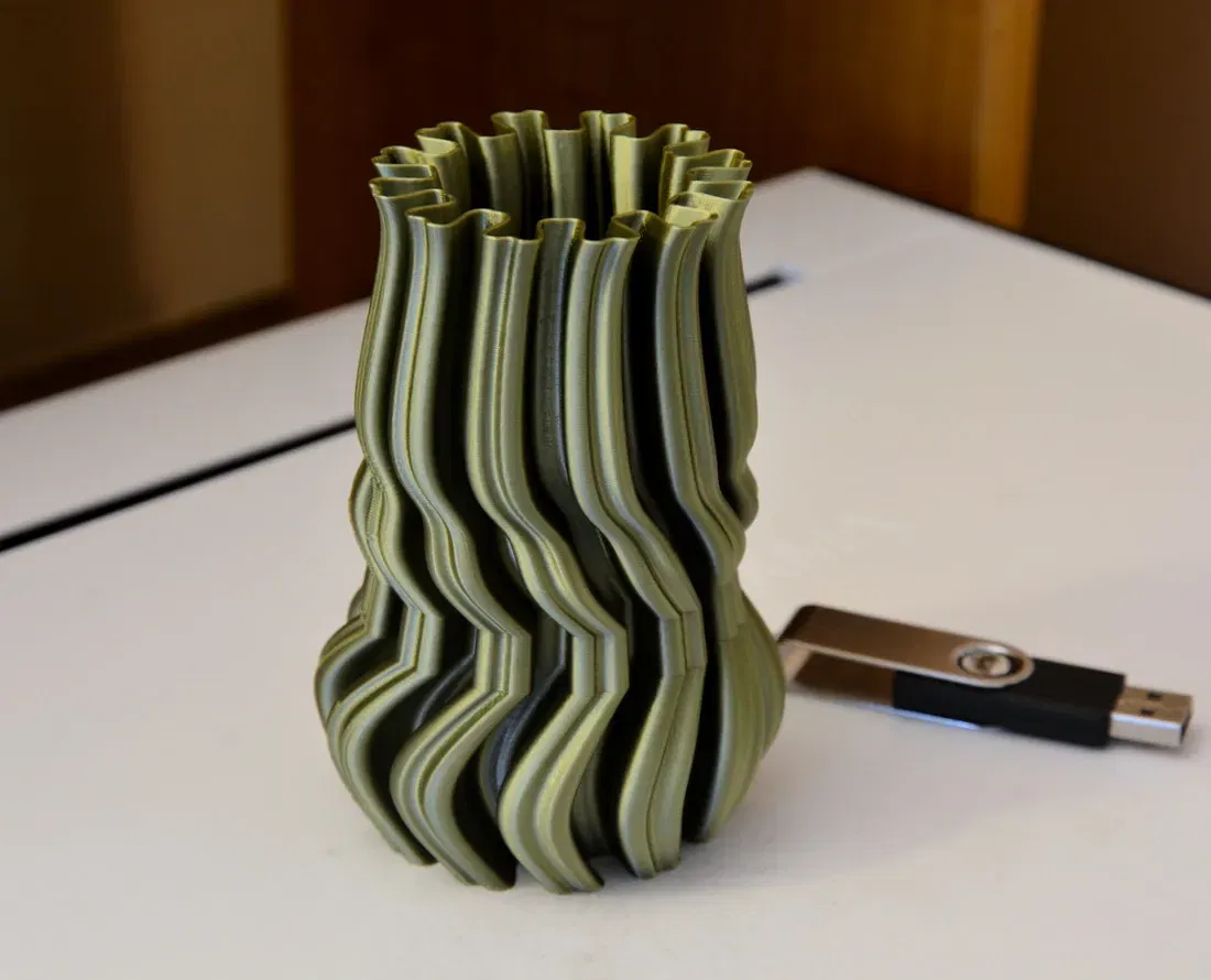Ảnh cho thấy chiếc lọ được in ở chế độ lọ/xoắn ốc với 1 lớp tường và 3 lớp đáy. Tệp stl đặc. Nó in tuyệt vời ở chế độ lọ hoặc chế độ bình thường.