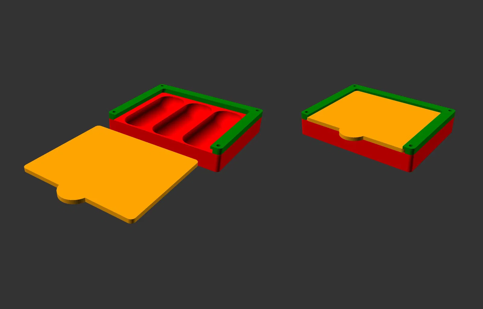 Đối với nắp trượt, bạn có thể sử dụng một mảnh acrylic cắt bằng laser dày 3mm (giả sử bạn có máy cắt laser) hoặc bạn có thể chỉ cần in nắp. Phiên bản cắt bằng laser cho phép sử dụng acrylic trong suốt hoặc trong suốt để bạn có thể nhìn thấy những gì trong khay.