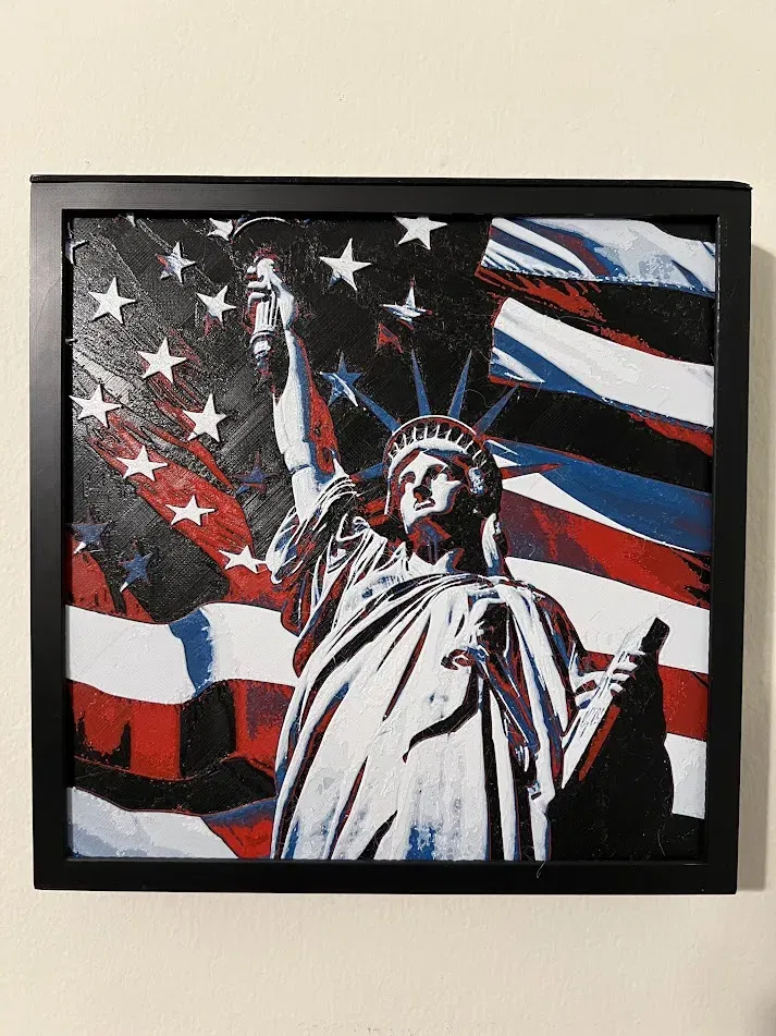 Một hình ảnh HueForge tuyệt đẹp cho Lễ Độc Lập 4 tháng 7, tái hiện một cảnh yêu nước sống động. Bao gồm hướng dẫn in chi tiết và cài đặt vật liệu PLA để đạt hiệu quả tốt nhất. Hoàn hảo cho việc trang trí mùa lễ hội.