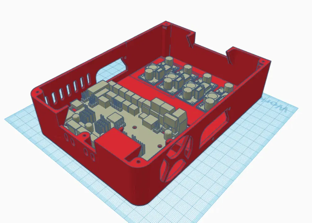 Một bản remix để gắn thêm 4 bộ chuyển đổi buck/step-down. Cái này in ra đẹp và vừa khít máy, có thể in ở độ dày lớp 0.32mm mà vẫn thành công.