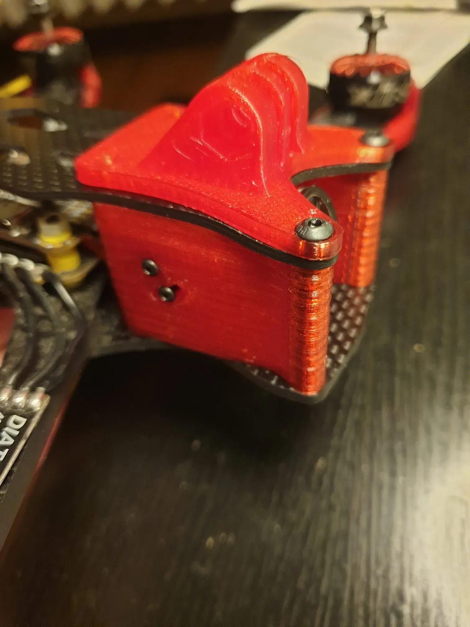 Tao phải nhét con Runcam Eagle vô cái khung Apex DC bản Aliexpress này. Kích thước khác bản gốc nên tao làm lại mount cho GoPro và cam Eagle. Có mấy chỗ bị under-extrusion nhưng sau khi đổi filament thì đẹp lắm.