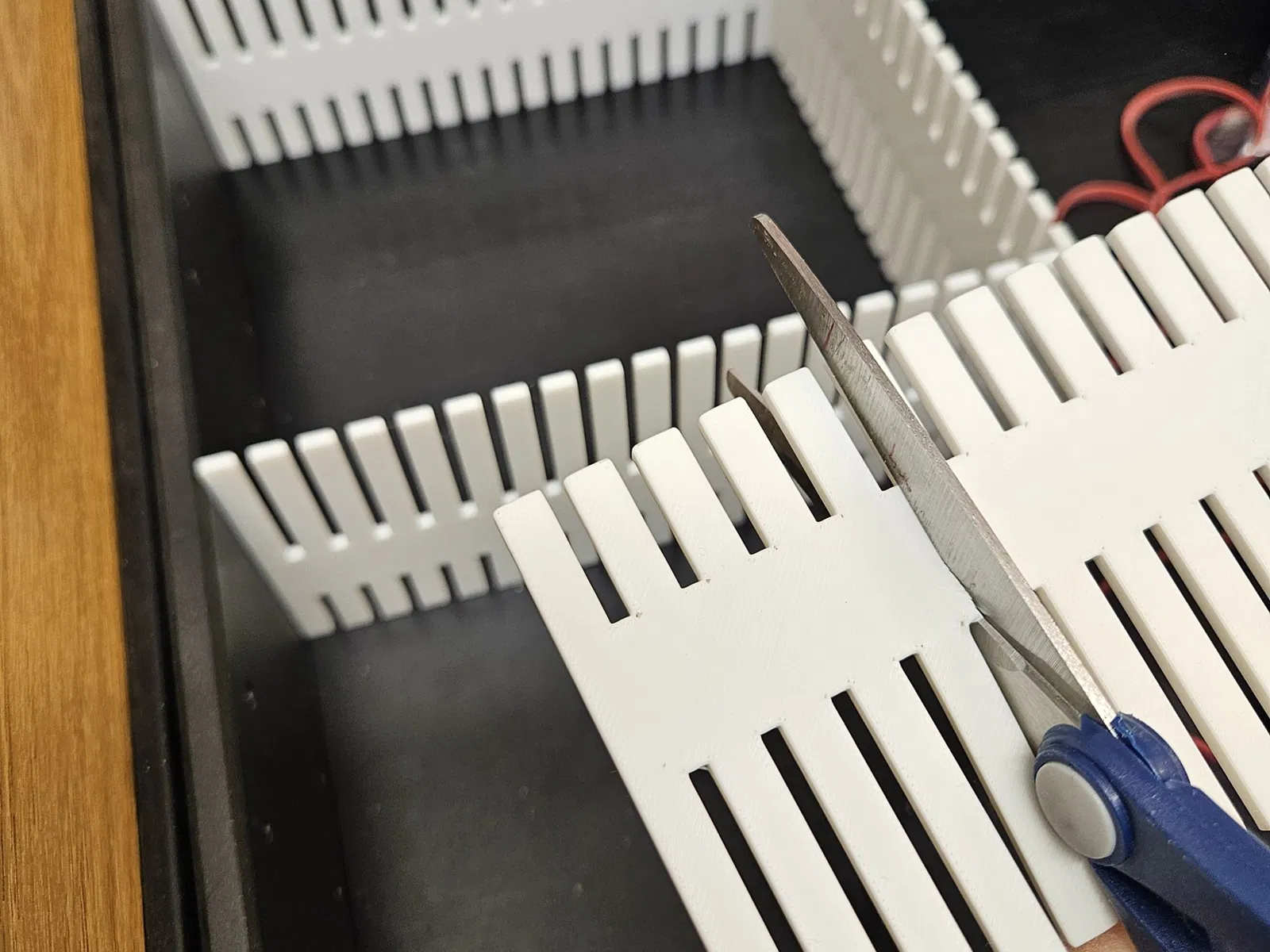 Tui có làm mấy cái vách ngăn kéo này nè. Mấy bạn in ra vài cái rồi ghép lại theo hình chữ thập là có mấy ô riêng biệt liền. Như vậy là mình tự chọn được kích thước cho ngăn kéo của mình luôn nha. Kích thước một vách là 20x8cm, góc hở 3mm, cao 2.9mm.