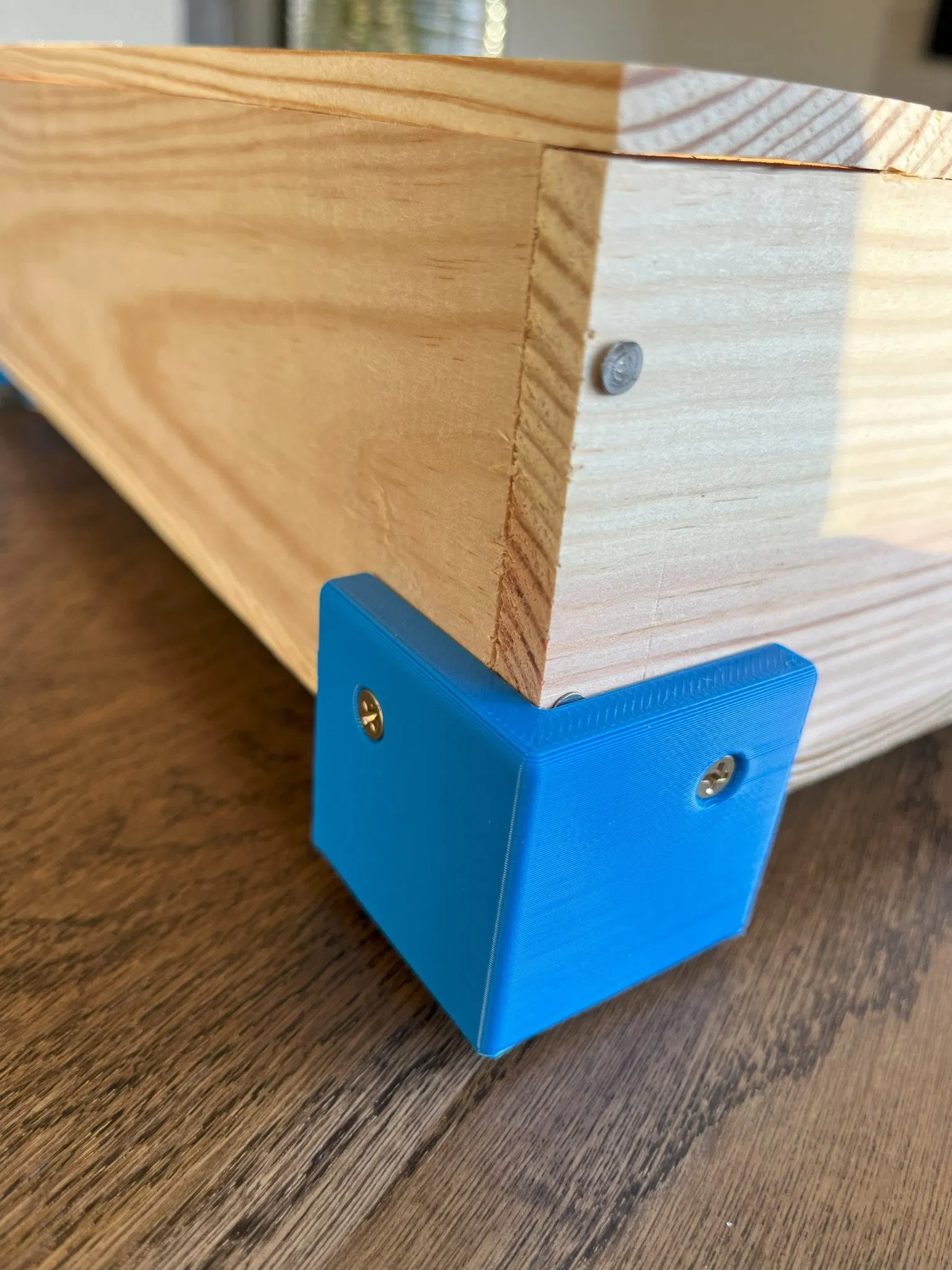 Tôi xin giới thiệu đến các bạn bộ góc xếp chồng. Chúng cho phép đặt chồng các hộp lên nhau một cách chắc chắn, và có miếng đệm nỉ để bảo vệ đồ đạc và sàn gỗ cứng của bạn. Mỗi góc được cố định bằng 3 #8 ốc vít gỗ. Để có độ khớp tốt nhất, tôi khuyên bạn nên bắt đầu gắn từ hộp dưới cùng.