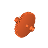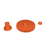 - Hướng in và hỗ trợ: Bản in này gồm 3 phần. In bánh răng và vòng đệm phẳng trên mặt bàn in mà không cần hỗ trợ để vân in gia cố cho nó. In nắp trục nghiêng sang bên với hỗ trợ để vân in gia cố cho bộ phận này.