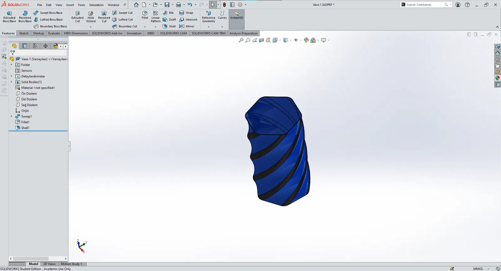 Mô hình "Spiral Vase VASE MODE" được thiết kế bởi Solidworks 2024. Mô hình này có thể in ở chế độ spiral vase, thích hợp làm bình hoa hoặc chỗ cắm bút.