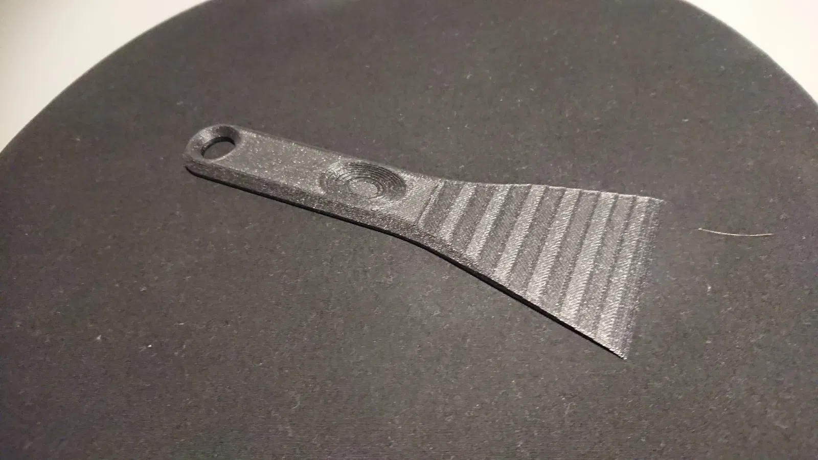 Cây cạo mỏng 55mm này có khe để bạn treo lên tường và một khe lõm để đặt ngón tay cái vô cùng tiện lợi, giúp việc vệ sinh máy in 3D trở nên dễ dàng hơn bao giờ hết.